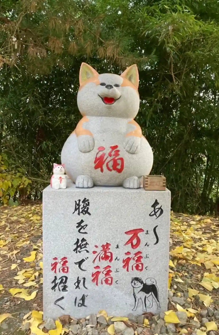 腹を撫でれば福を招く狛犬、秋田犬のぷく丸