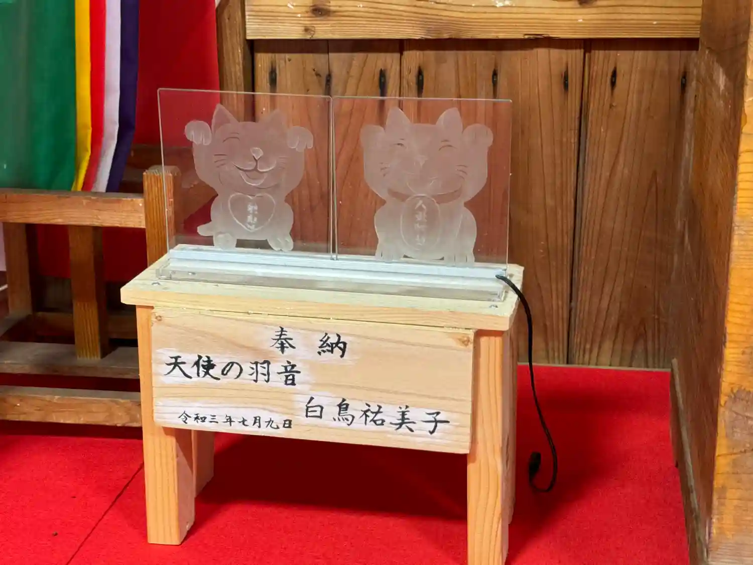 ガラス彫刻をオーダーメイドで作られている秋田市土崎の天使の羽音様より、狛猫をご奉納いただきました。…