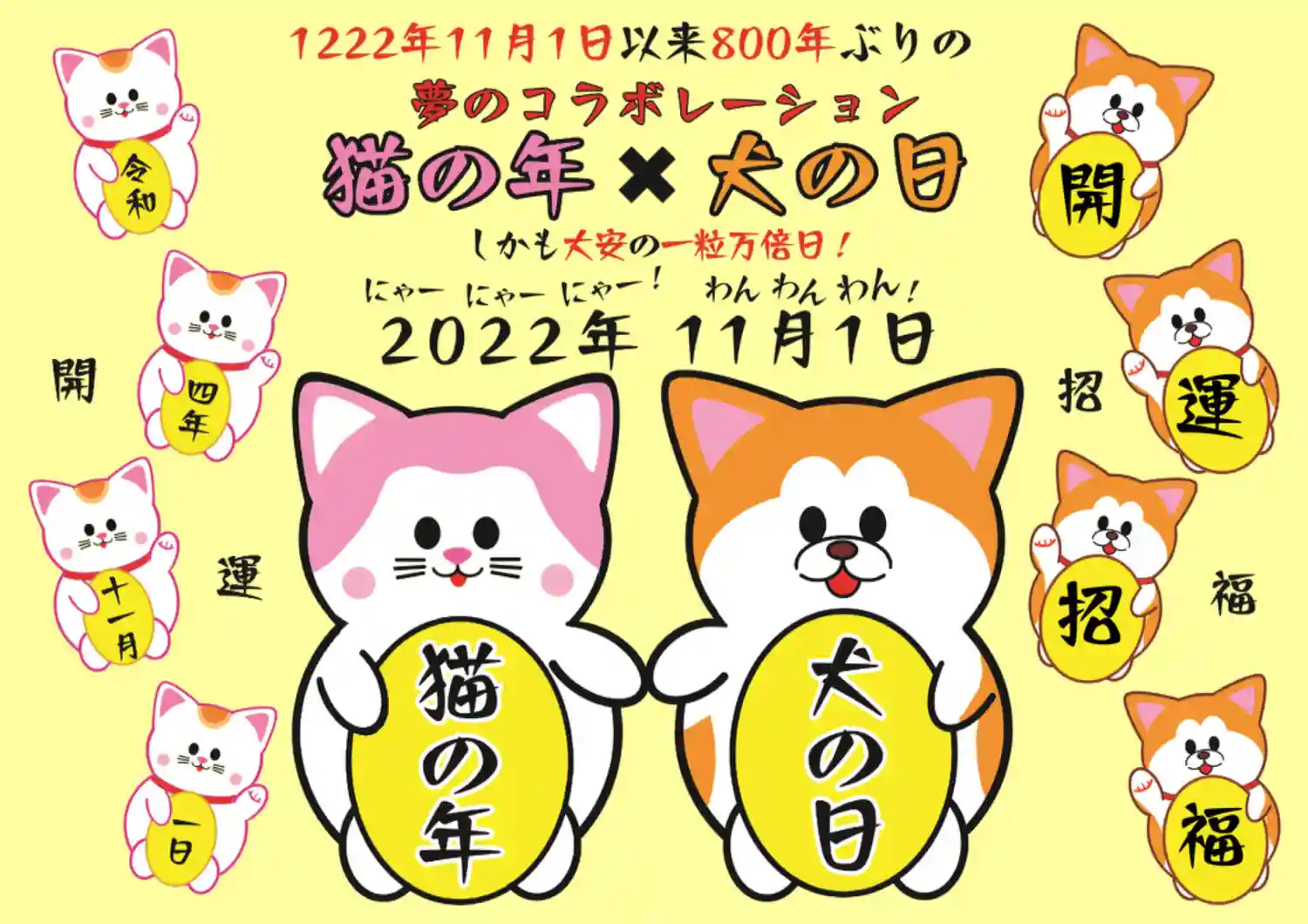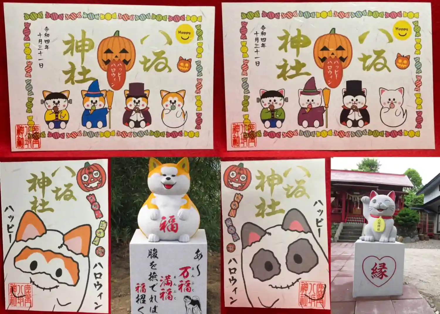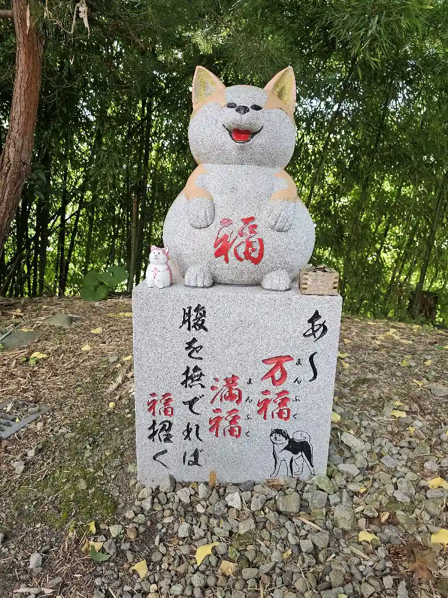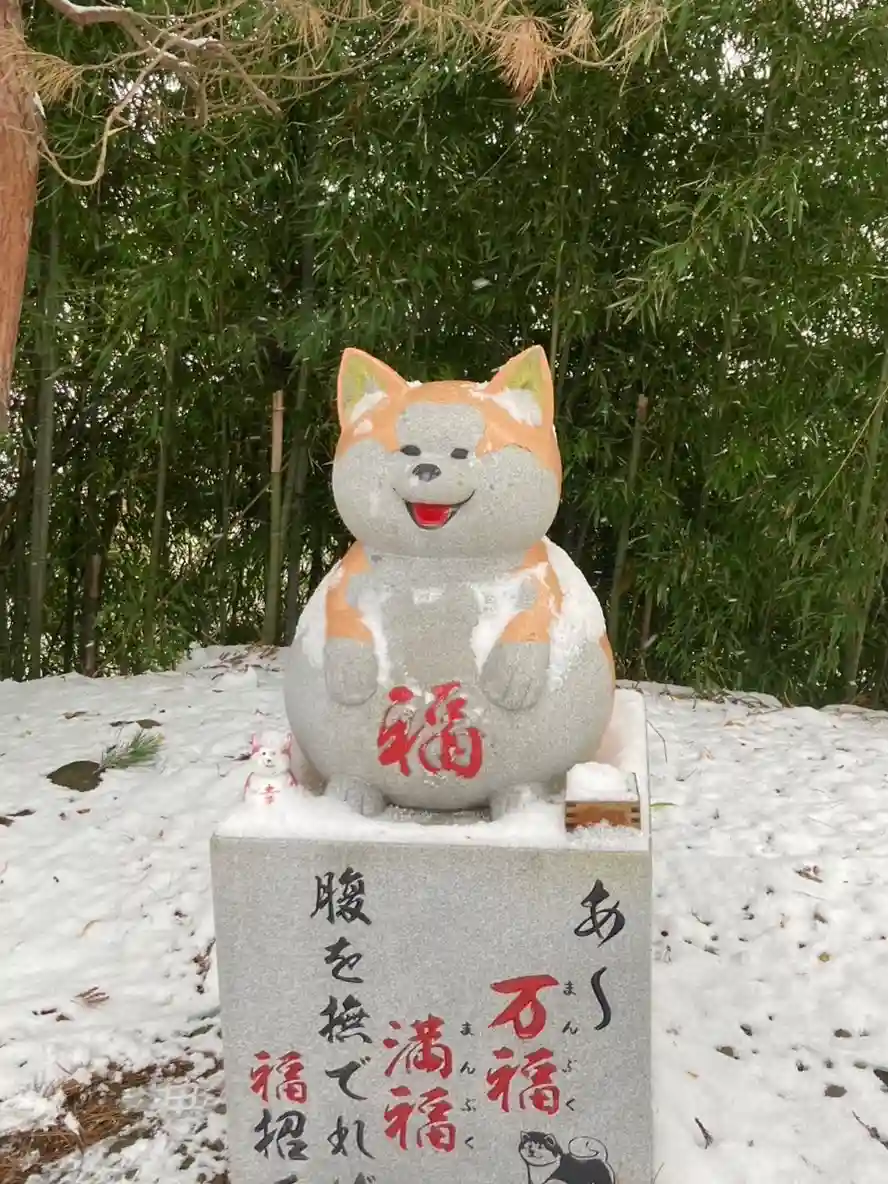 当社の石像《化け猫様》と《秋田犬のぷく丸》が描…