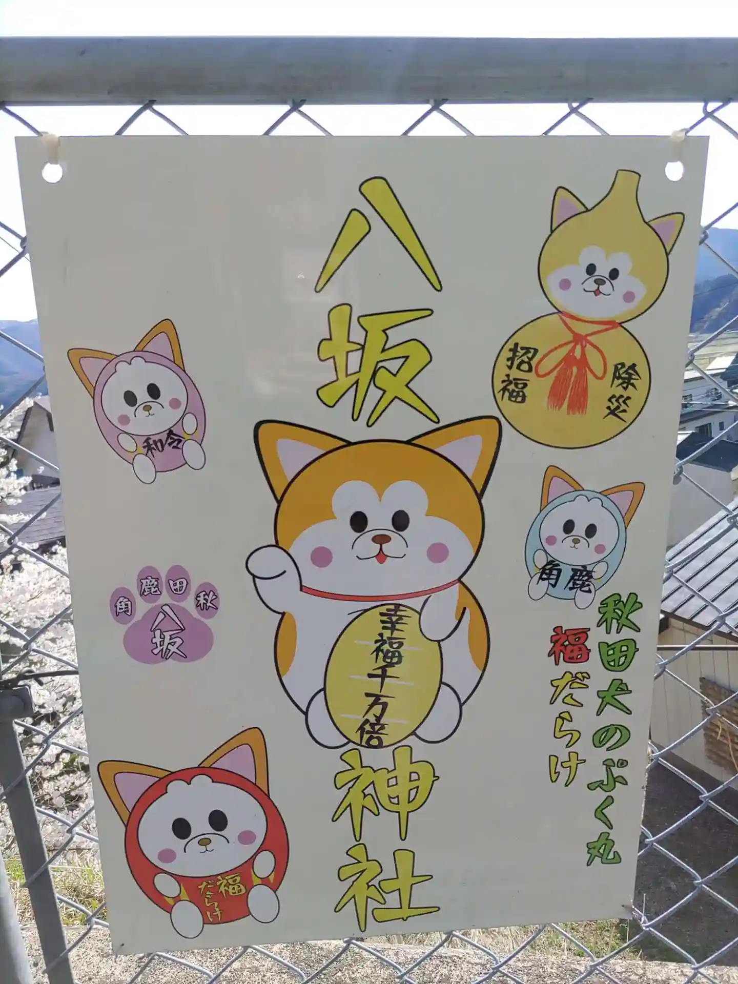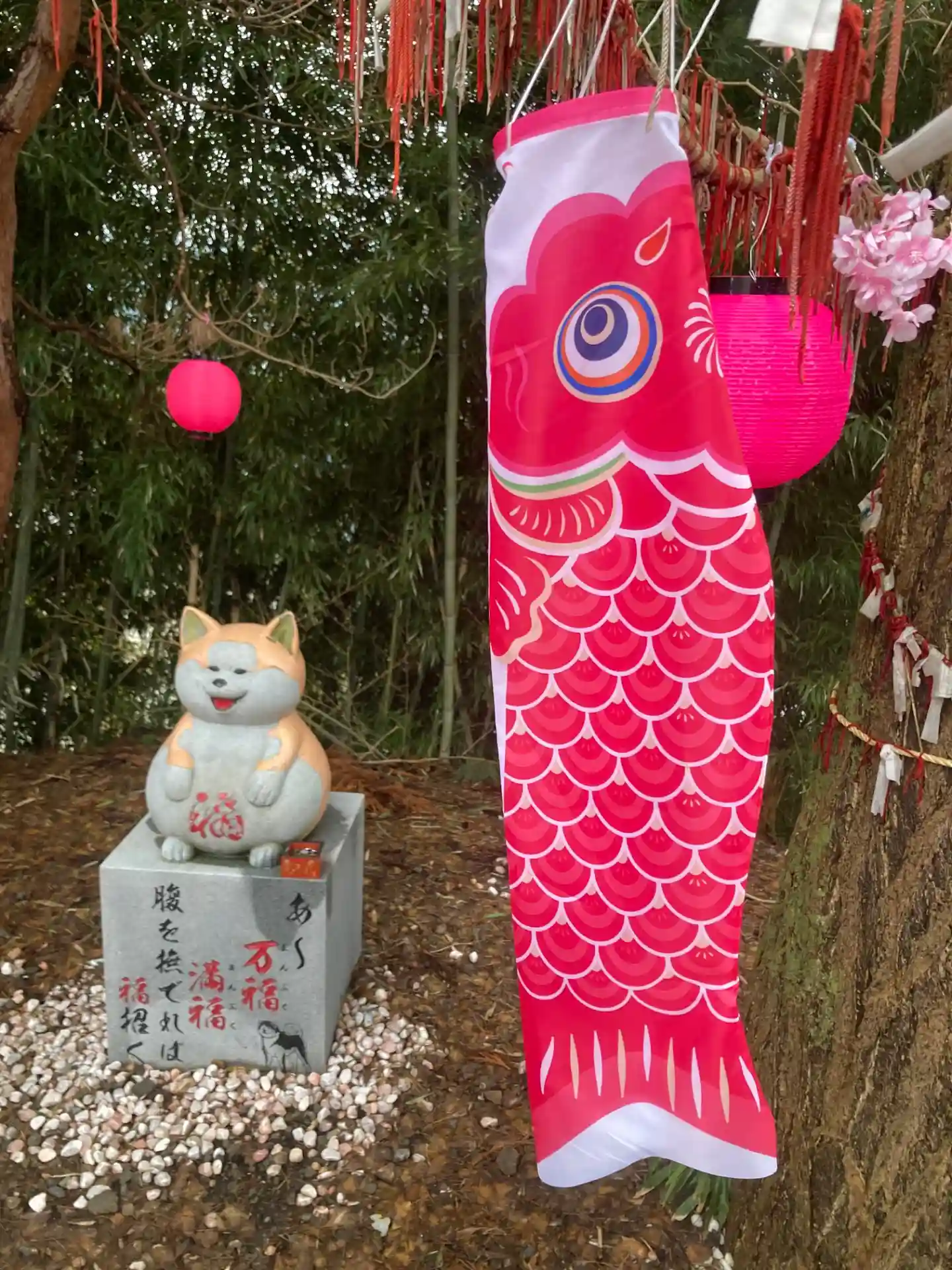 桜柄の狛猫と秋田犬です🌸