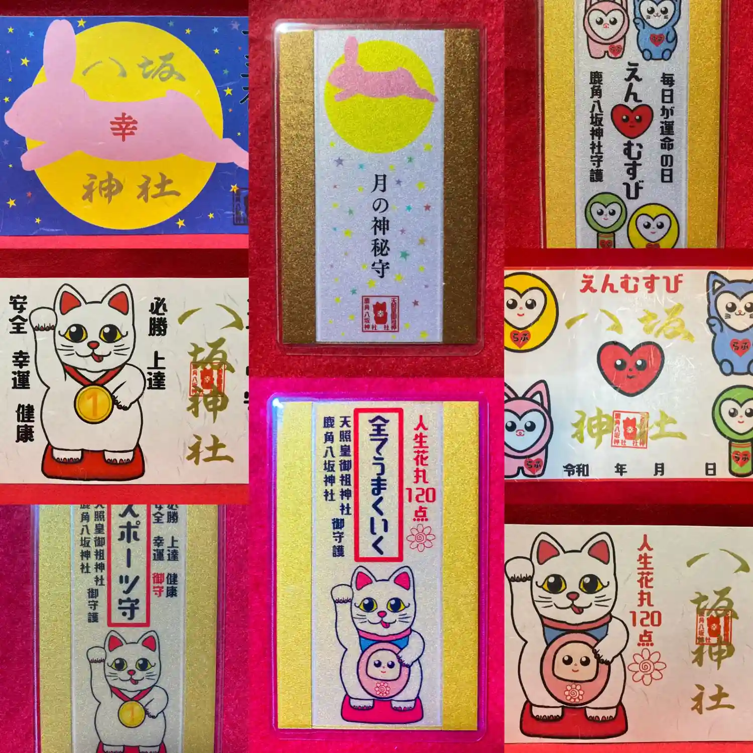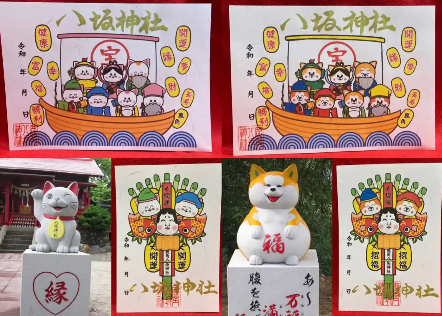 20種類の猫の御朱印から5枚を重複し…