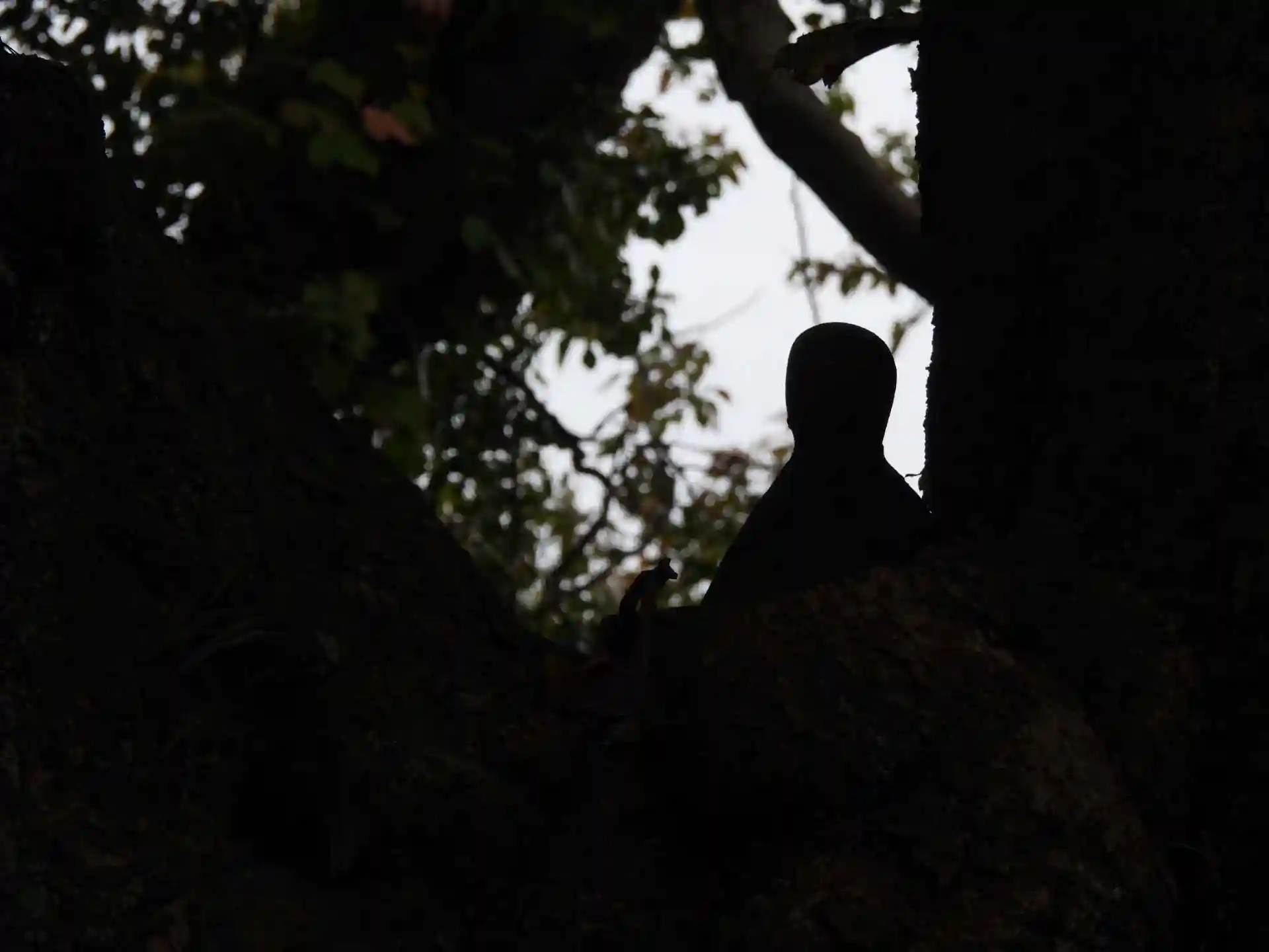 「木のぼり地蔵」様:太い幹2本の間に鎮座されています。