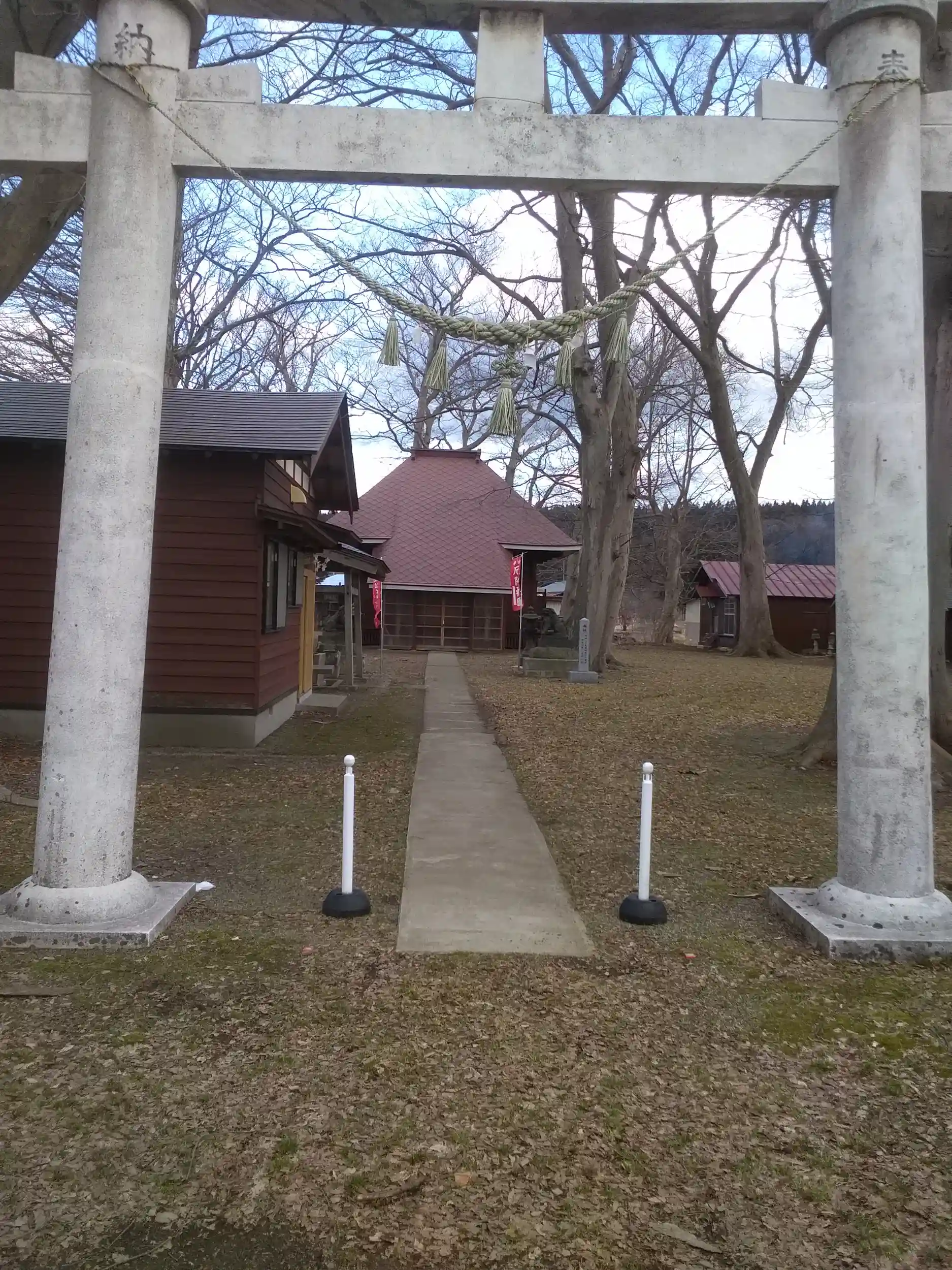 この時期は木の葉が落ちて境内が思う存分見渡せます。本殿の周囲に多数の社や石碑が見られます。拝殿前には風除室があり、風を気にせずお参り出来ました。