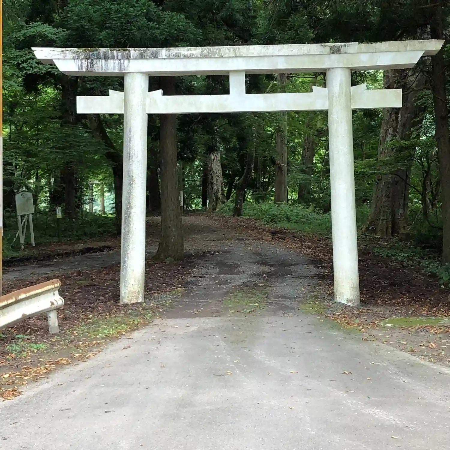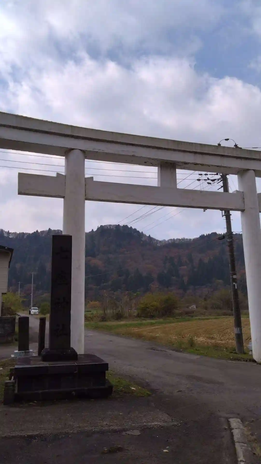 真っ白な鳥居が印象的です。その鳥居をくぐると見えてきます✨近くには川も流れていて、とても心地よい空…