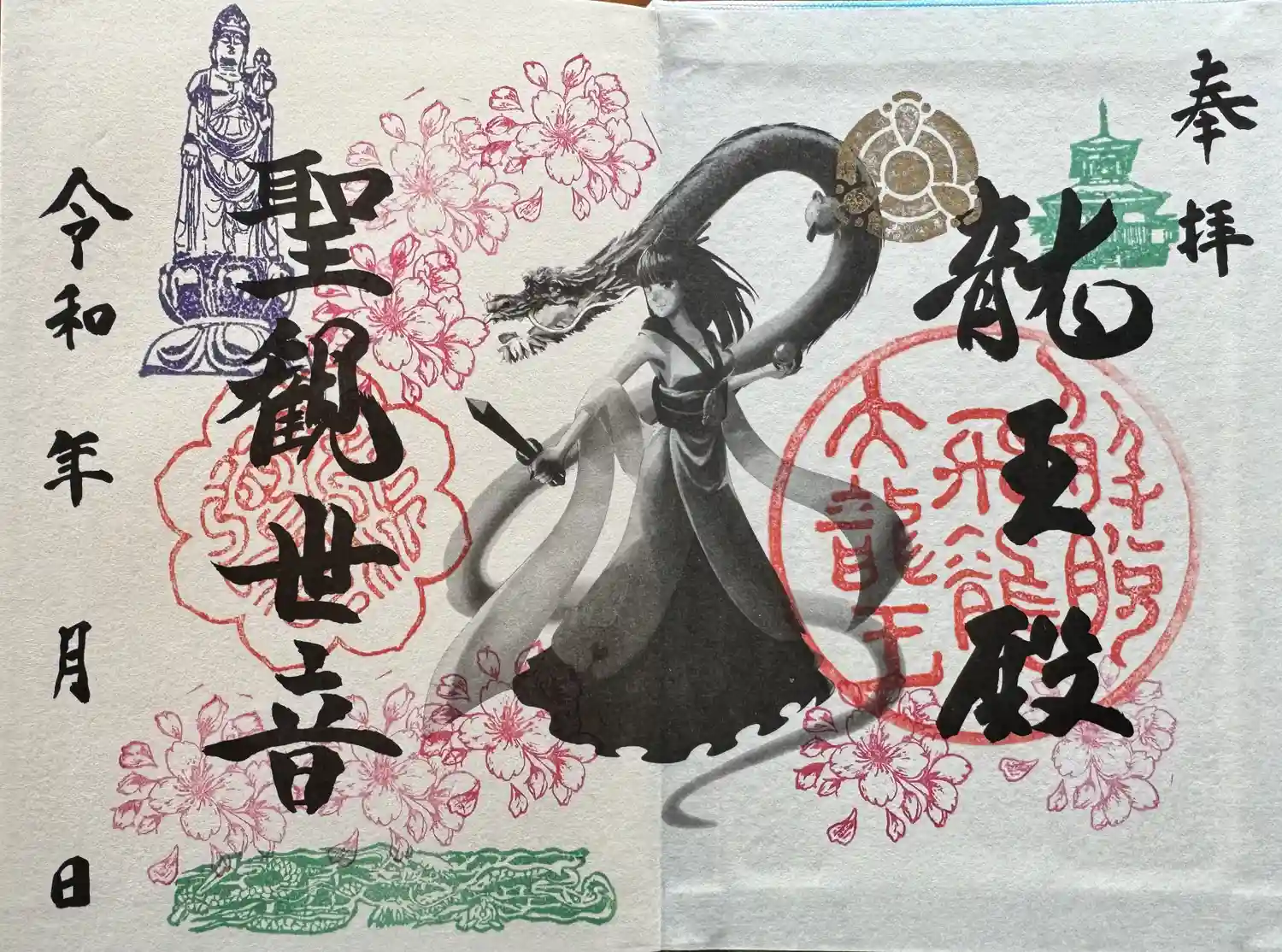 大龍寺オリジナル御朱印帳の期間限定版です。桜の印が捺されています。期間限定ですが、通常と同じ2500円です。