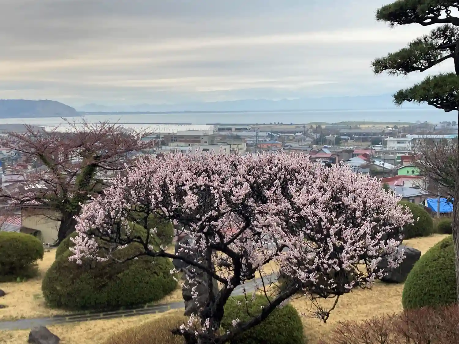 大龍寺の桜の先には、向こう側の公園の多くの桜も観られます。
