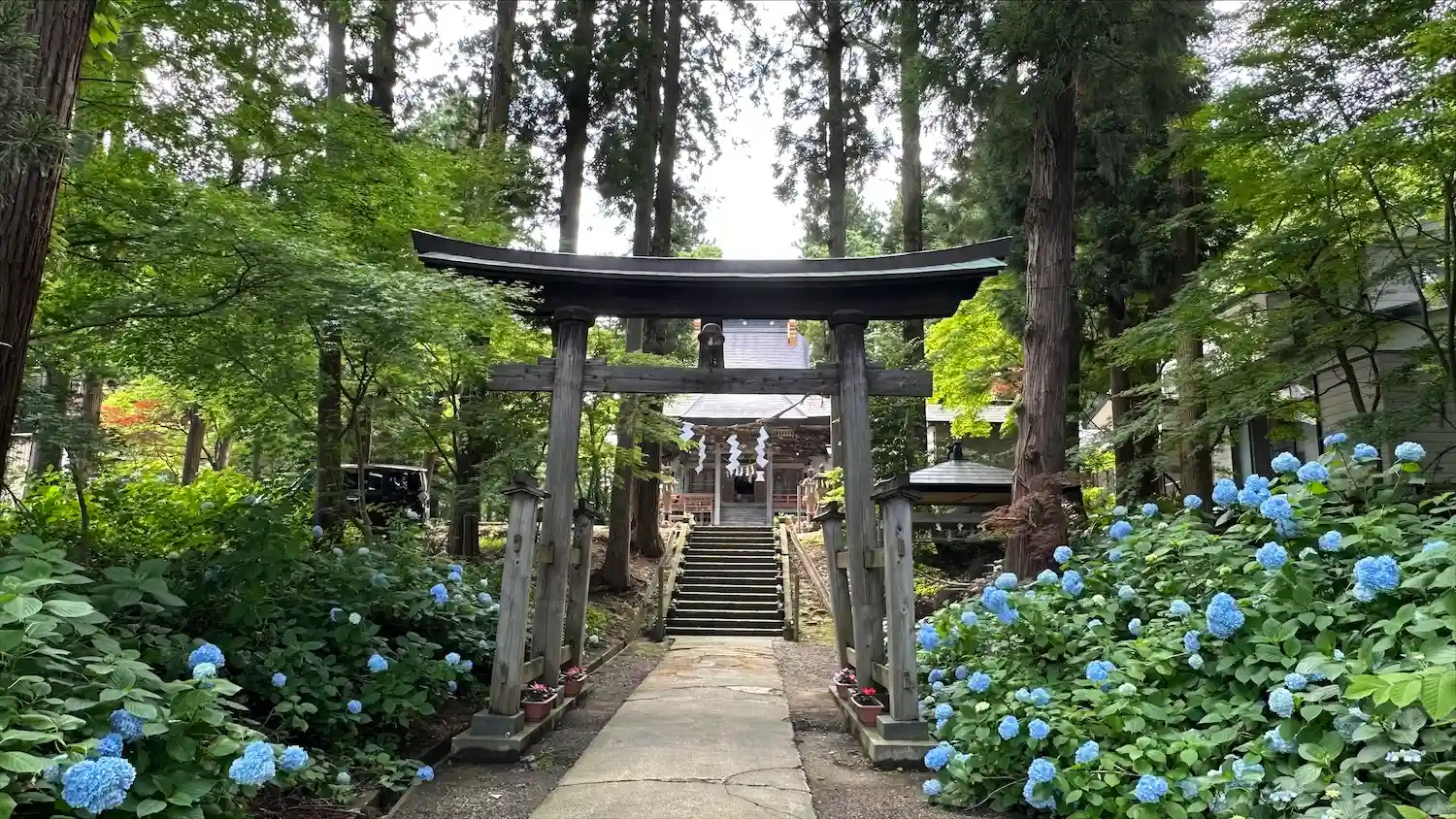 お参りしてきました🙇素晴らしい拝殿、彫刻でした~☺️紫陽花も参道を彩り、すてきでした😊