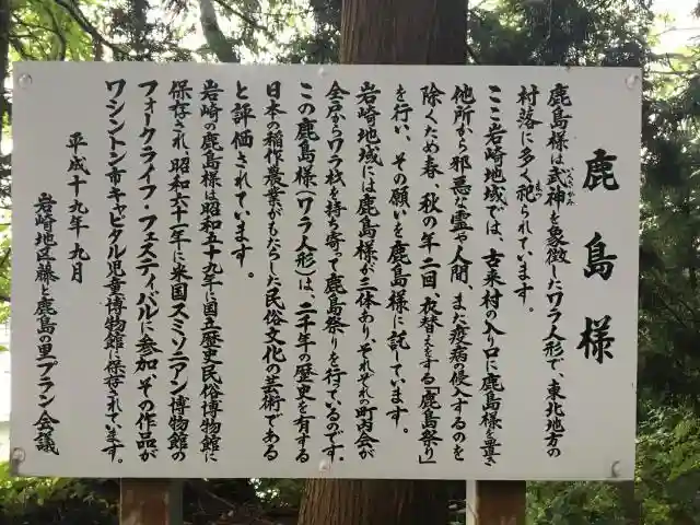神社のさらに奥をいくと、鹿島さまを見つけることが出来ました。4mはわたし的にはなかなかの迫力があり、お顔は結構怖かったです。余所者が入ってこないための魔除みたいなものらしいですが、撮り忘れましたが、狛犬もこわい感じでした。地元の方を護ってきたのかなぁと思ったりもしました。