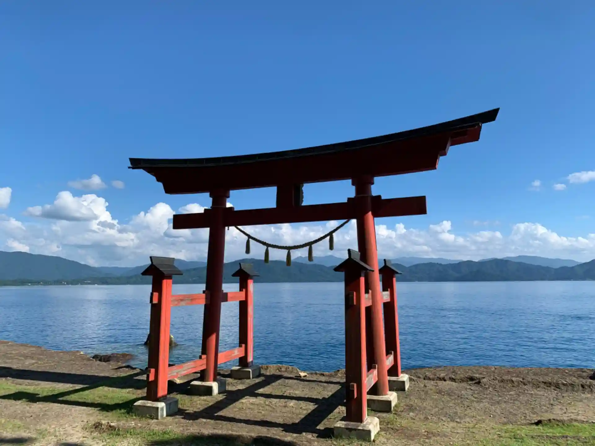 天気がいいとやはり田沢湖面が青くてキレイです。そこに赤い鳥居が映えてますます見入ってしまいます。