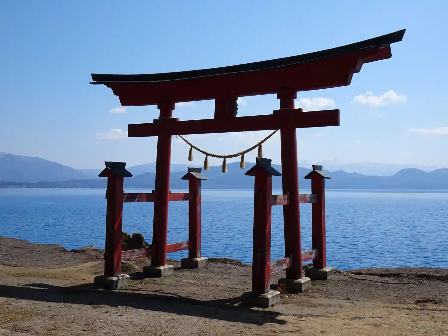 田沢湖畔にたたずむ鳥居がとても綺麗です