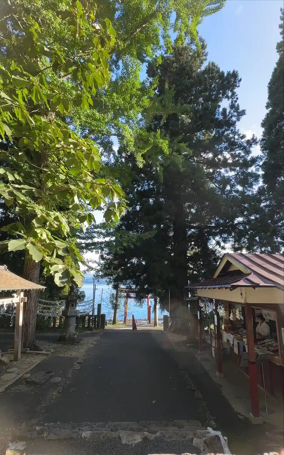 この湖面の青と鳥居の赤と晴天。。。。絶景とはこのことかと!
