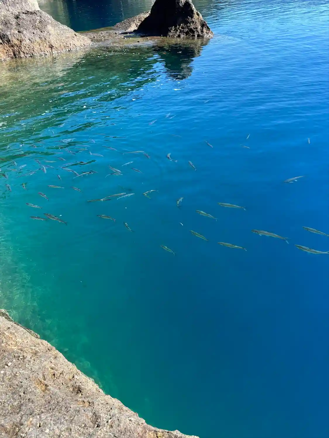 水面にはたくさんのうぐいが泳いでるのが丸見え🐟