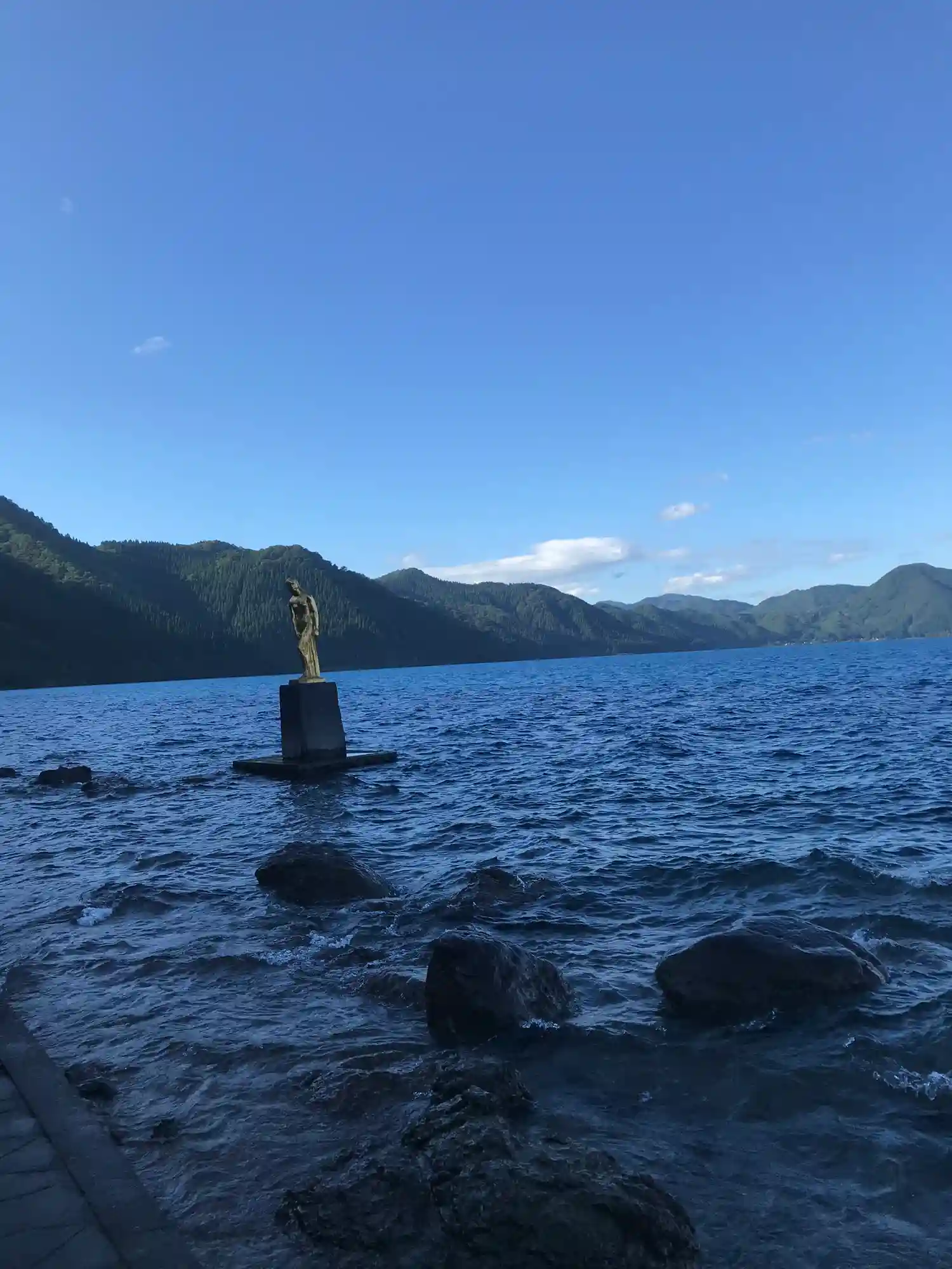 田沢湖面が青くて感動します。暑くて長居できませ…
