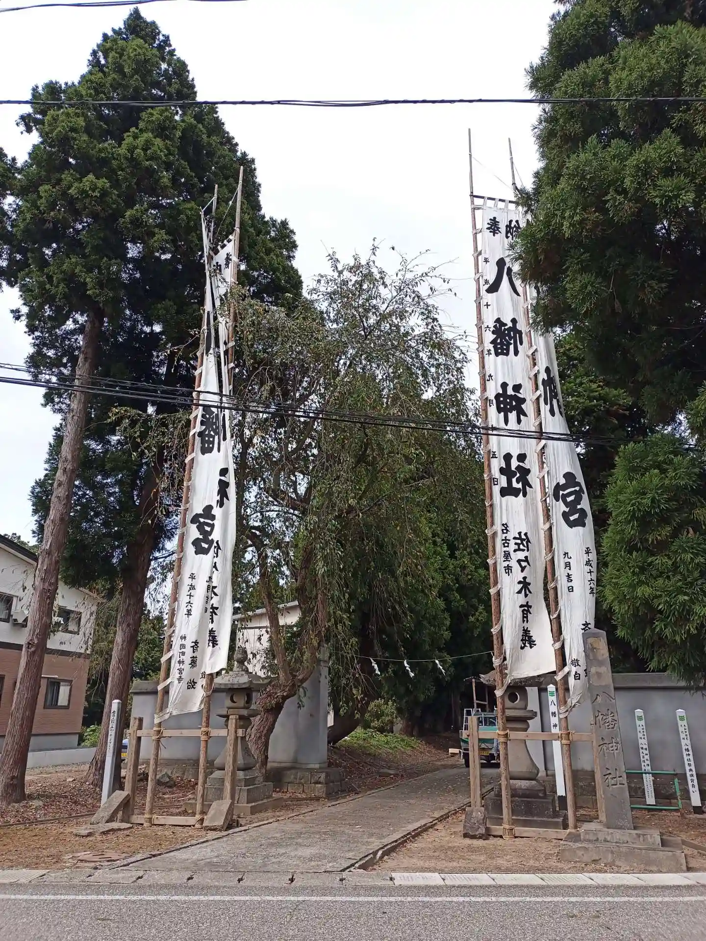 この日は神宮寺駅周辺に御神燈の提灯を幾つか見掛けたので、「お祭りかな?」と思って参拝しに行きましたが、林の中にある境内では地元の氏子さんと思われるオッチャン達がお祭りの準備をしておりました。
