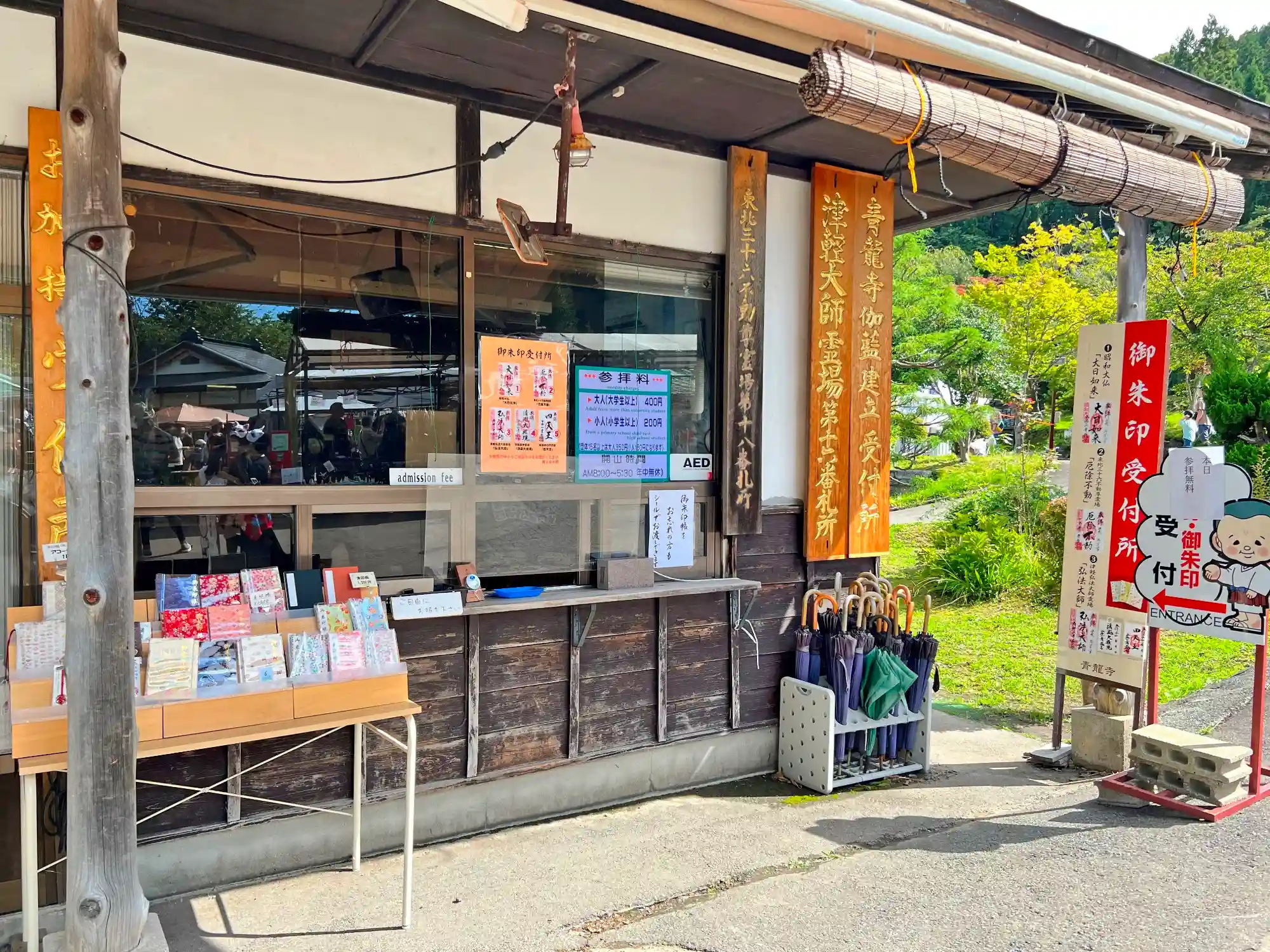 参道を登り切ったところ、参道左側にある<受付>。御朱印はこちら。