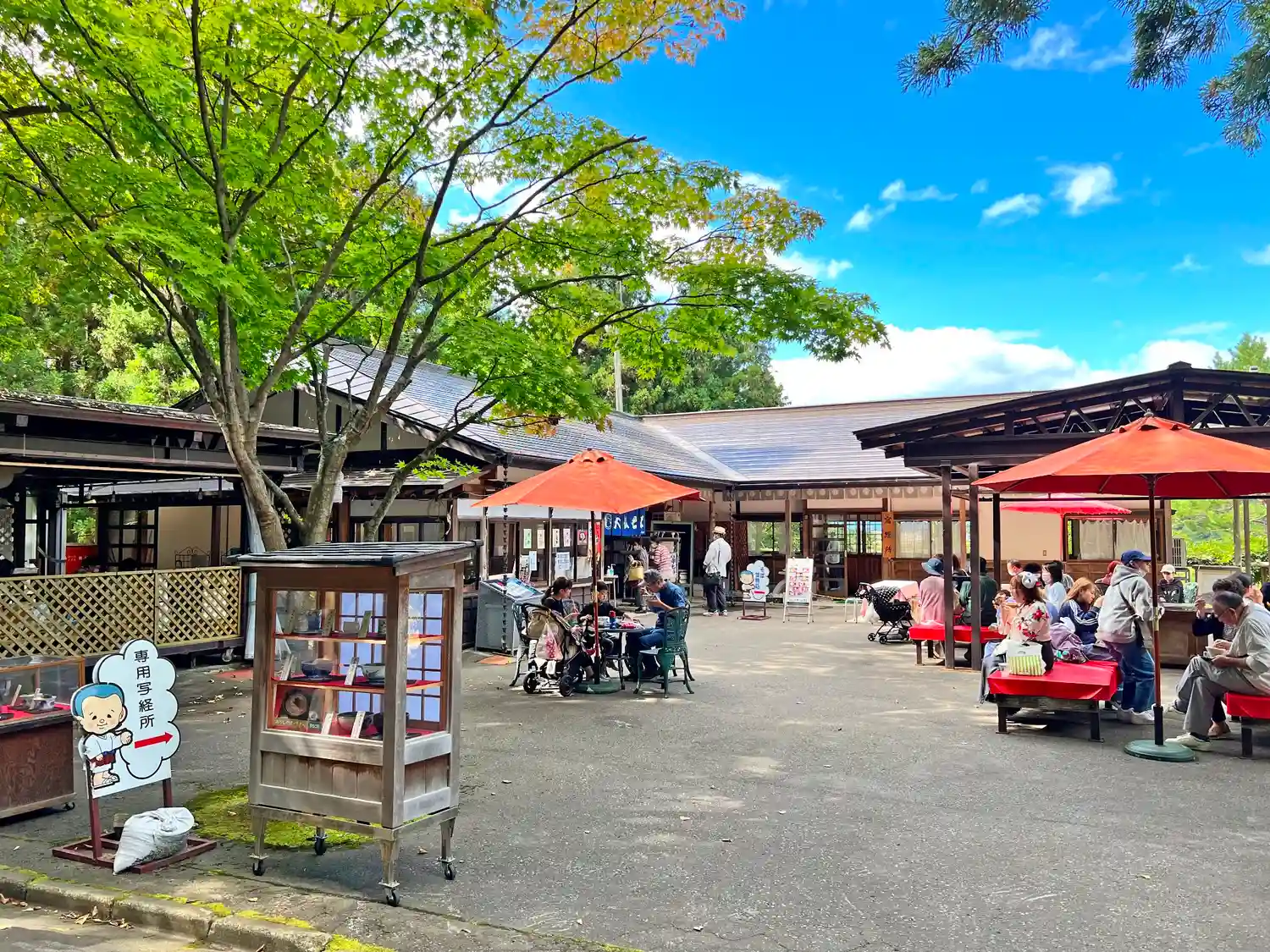 参道左側の、大繁盛の<茶店>。その右奥は<専用写経場>。