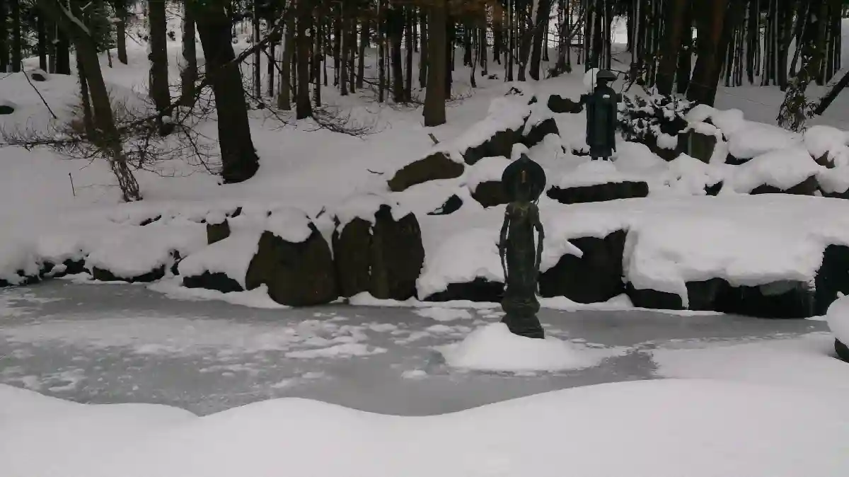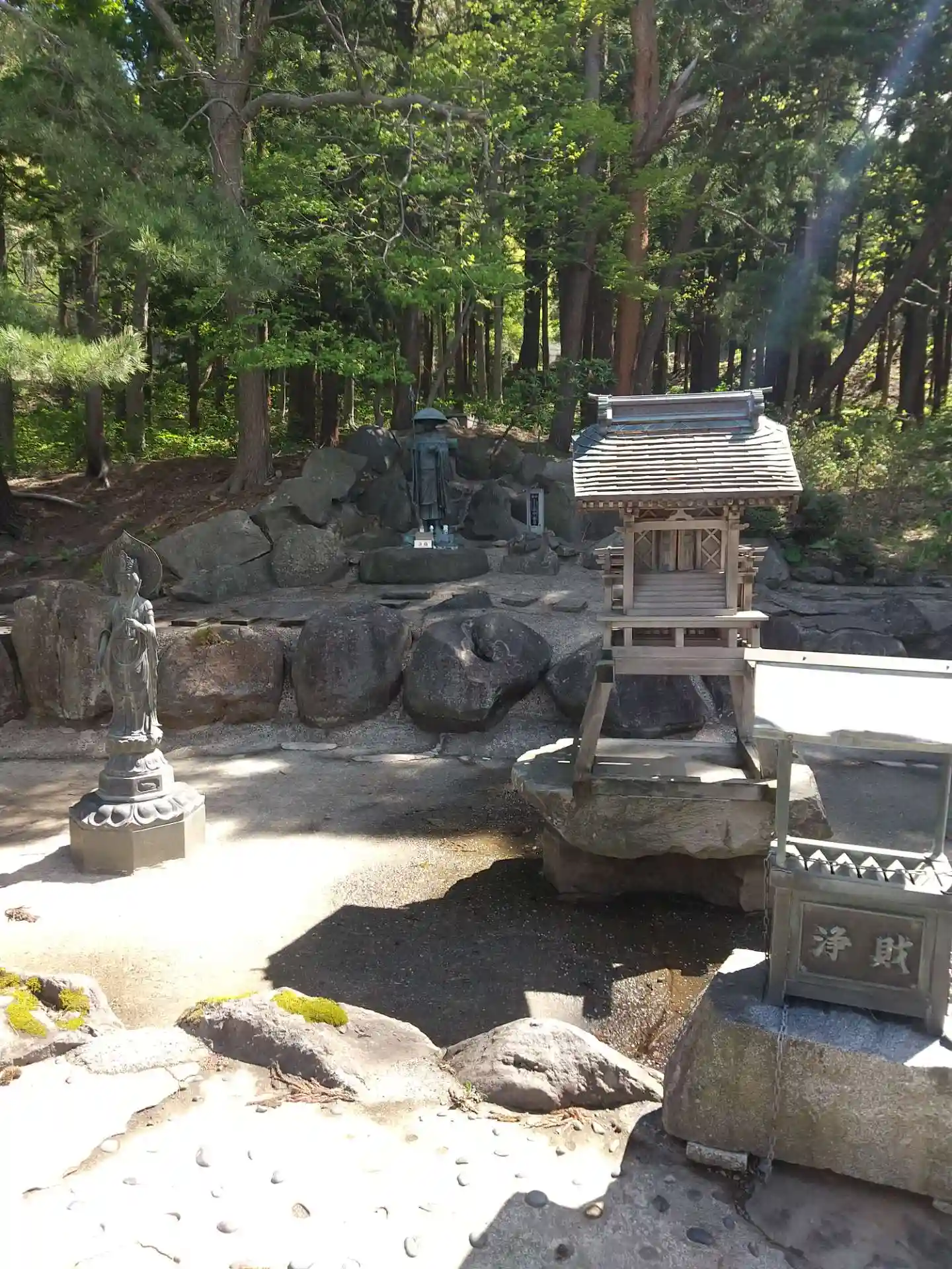 参道右側の<みずかけ地蔵像>。