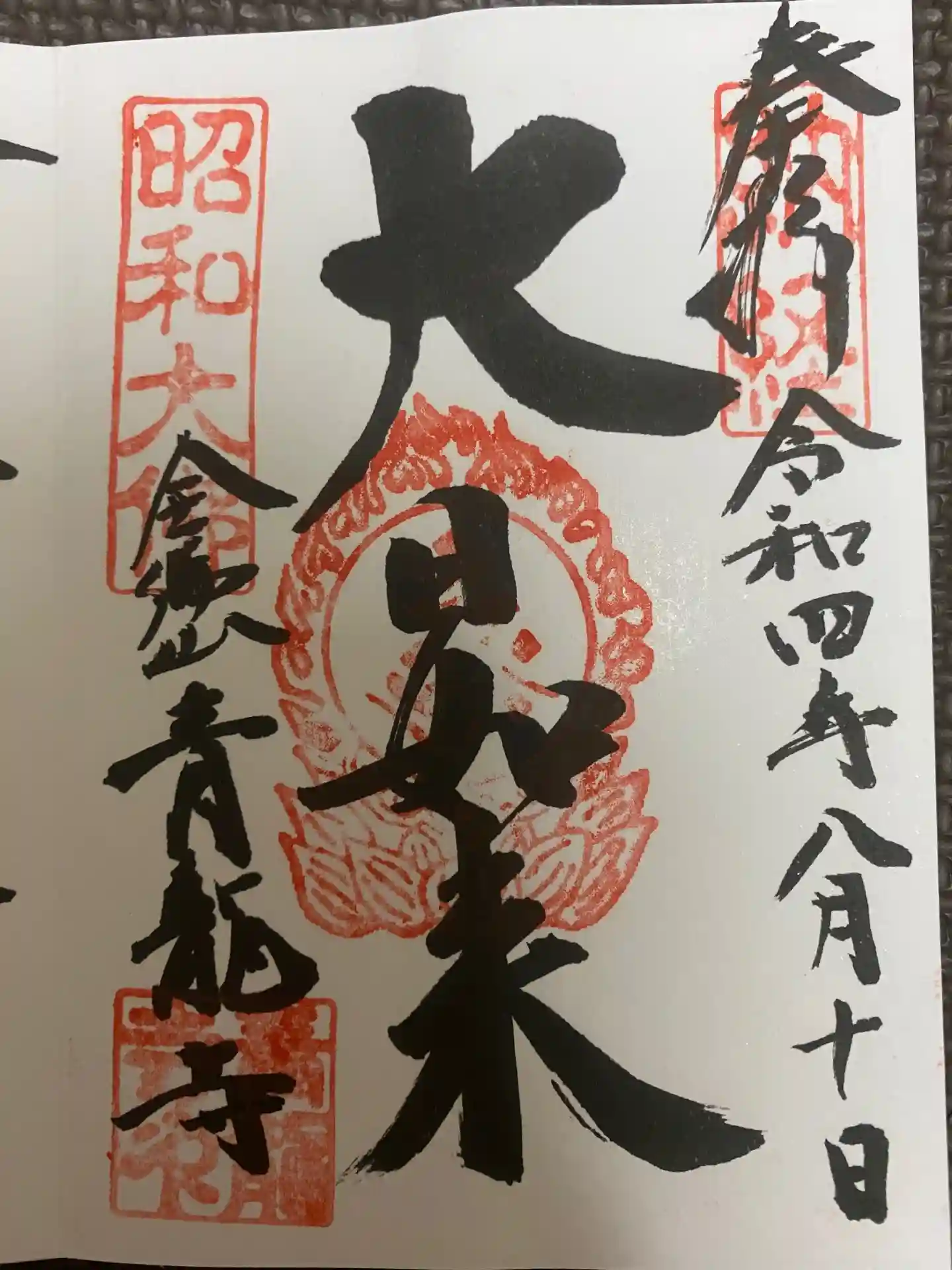 こちらは帰り際に同じ御朱印所でお坊さんに直書頂きました。