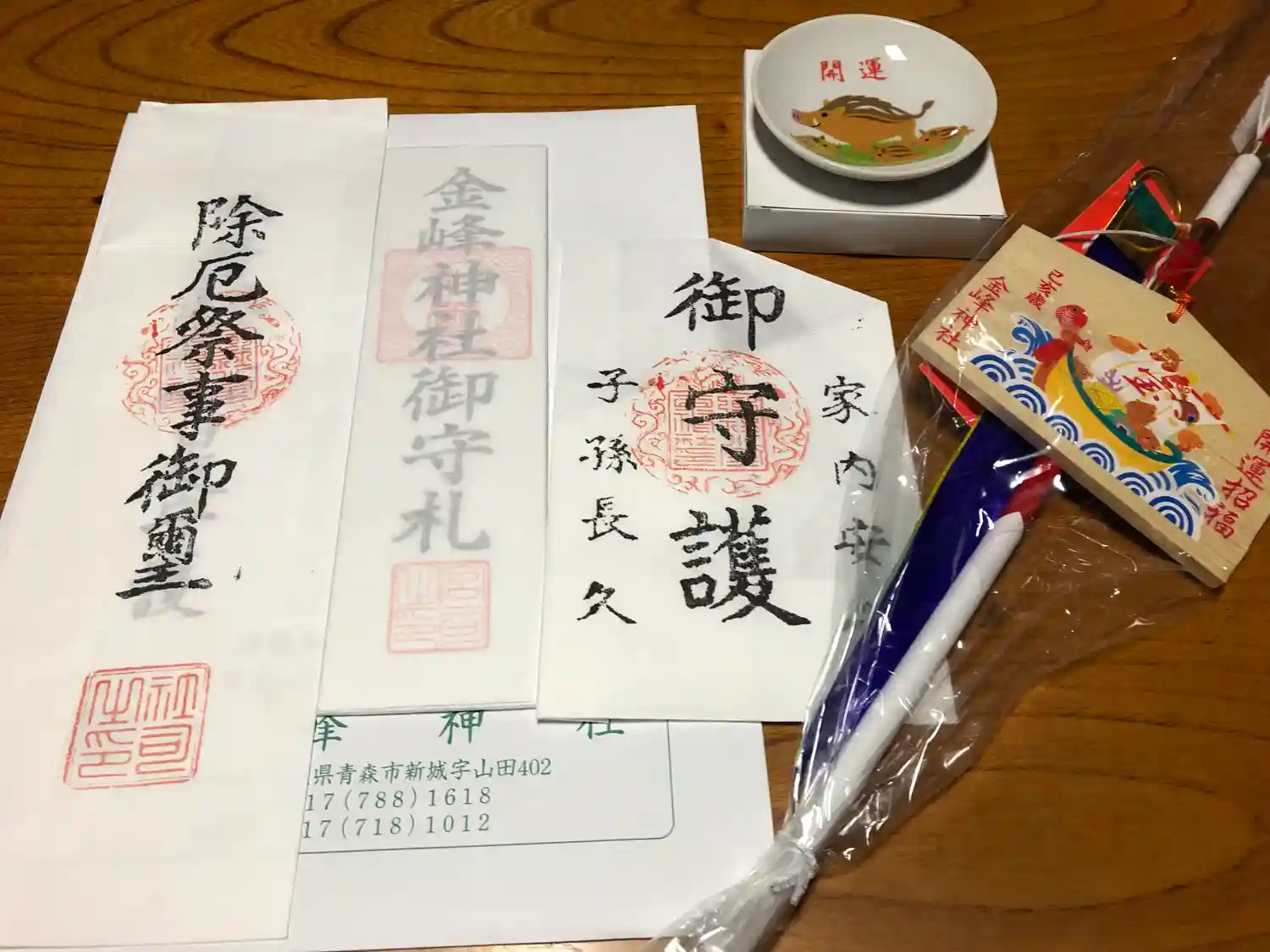 お祓い後に頂戴したお品の数々。