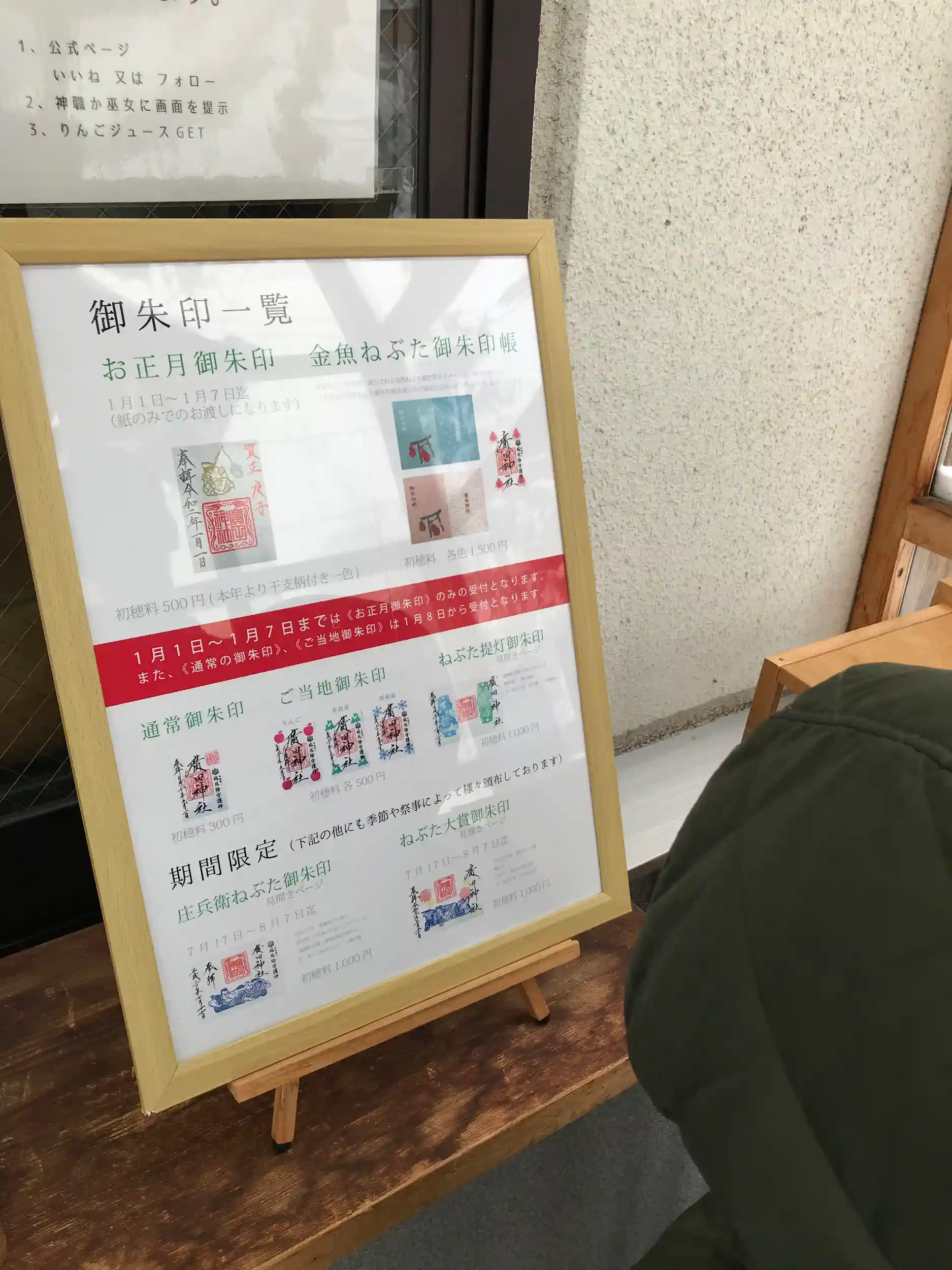 見開きのねぶた提灯御朱印と、ご当地御朱印(今回はリンゴの柄を選択)を頂きましたが、どの御朱印も素敵で迷ってしまいました。