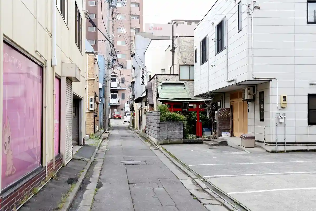 その途中で細い路地の向こう側に赤い鳥居が見えたので寄り道です