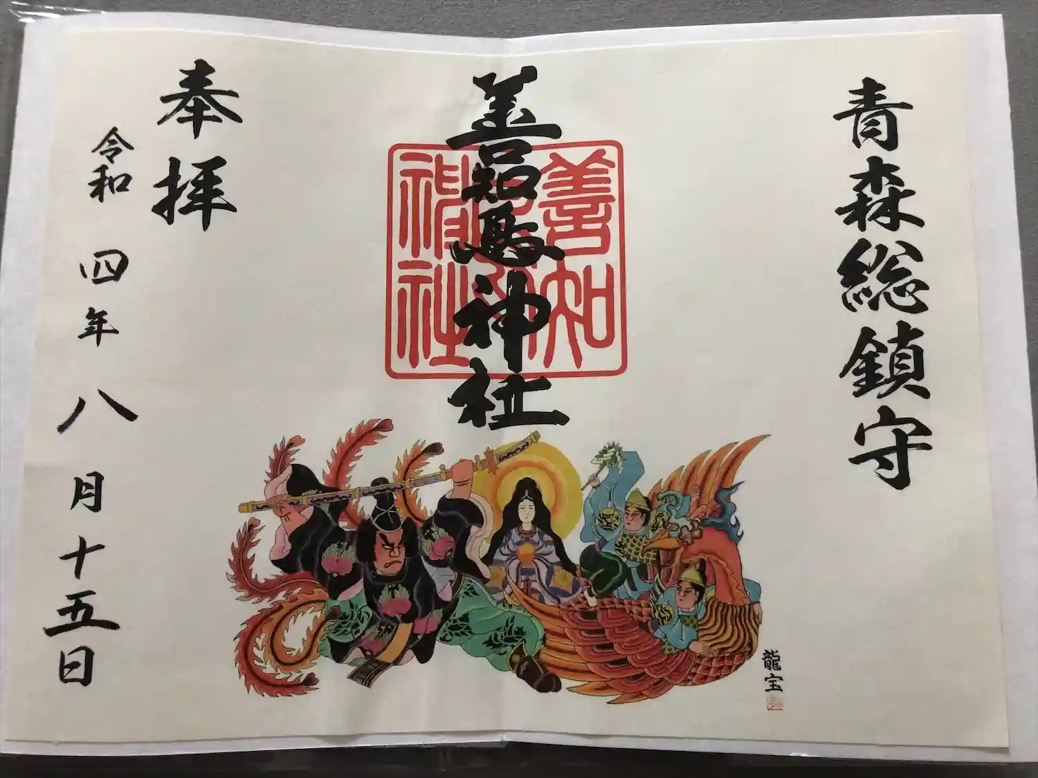 令和元年限定御朱印帳の表紙絵は、2018のねぶた祭りで出陣した。大型ねぶたの下絵を使ってます。