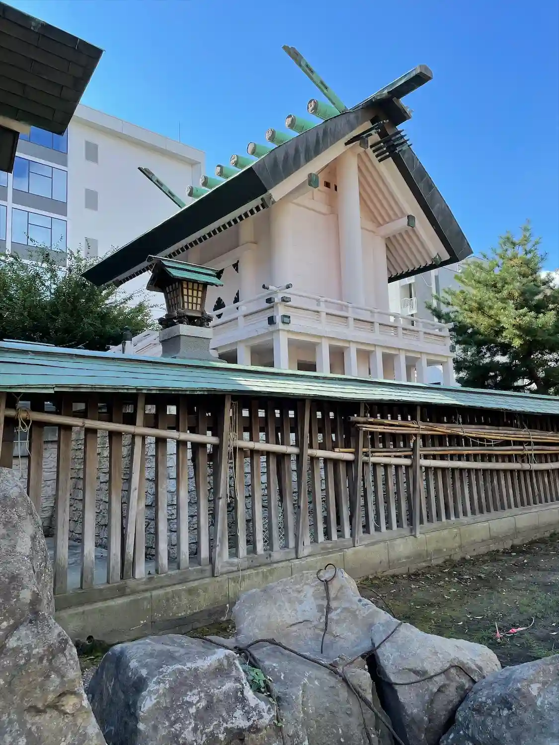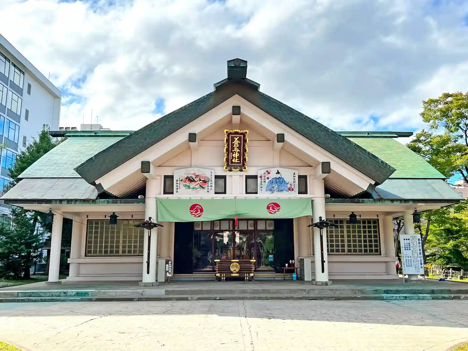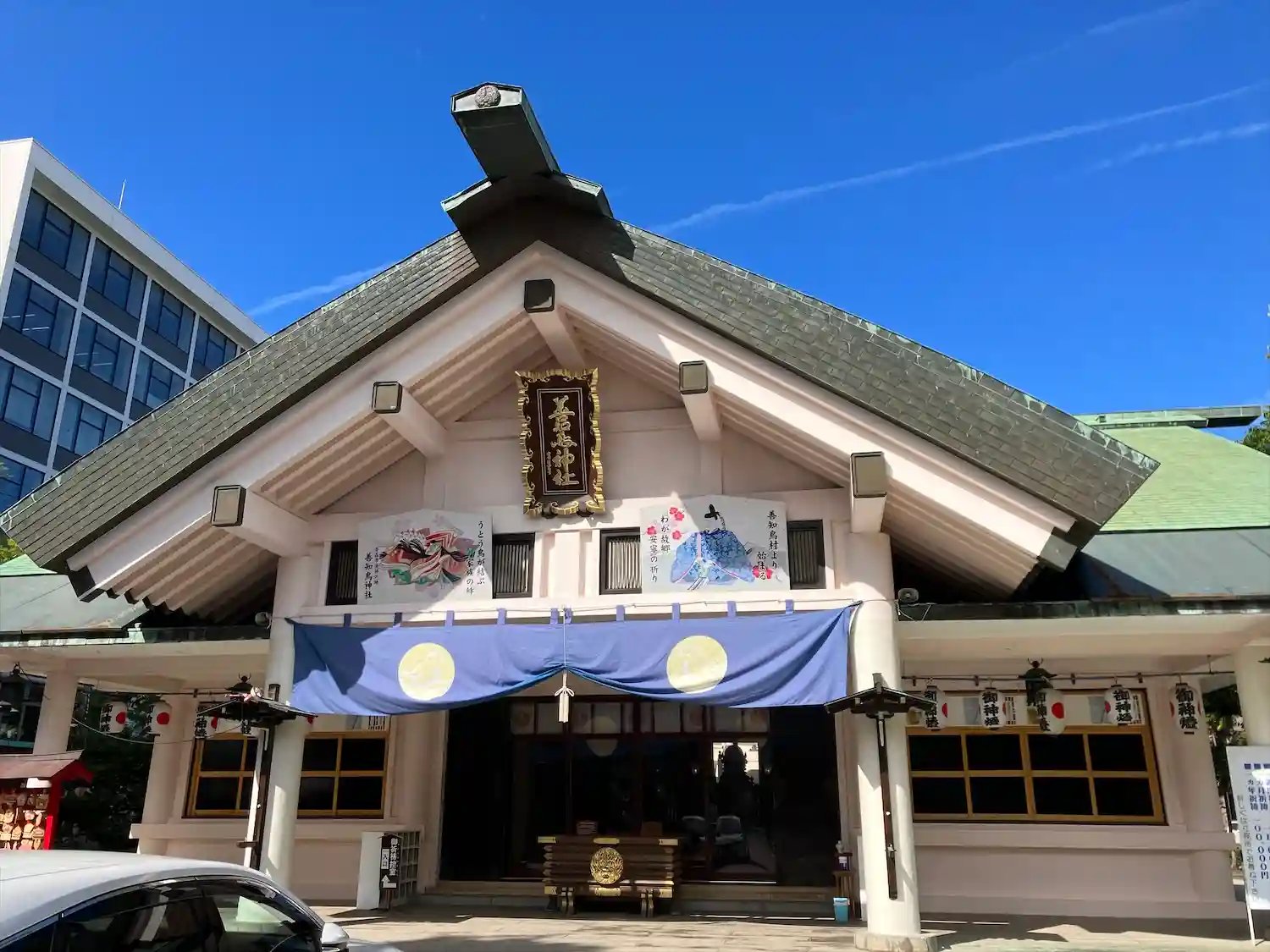 白いモダンな社殿が印象…