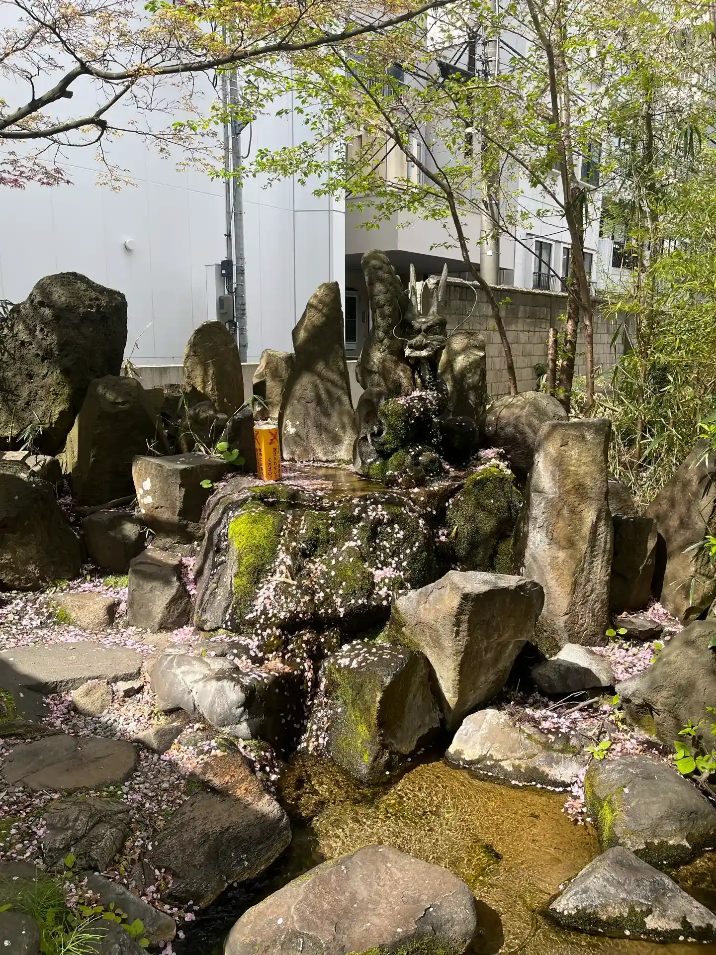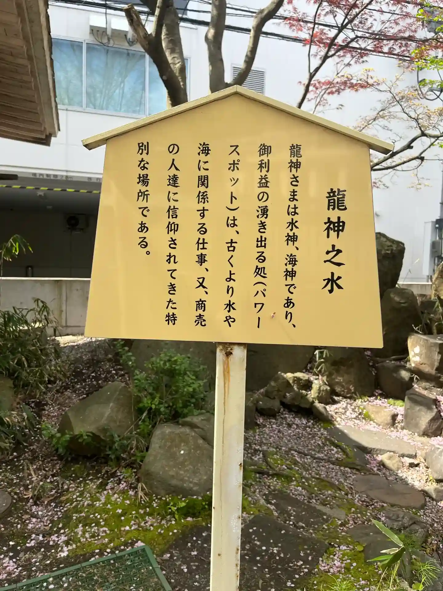 パワースポットの龍神之水に桜が浮いていてキレイでした