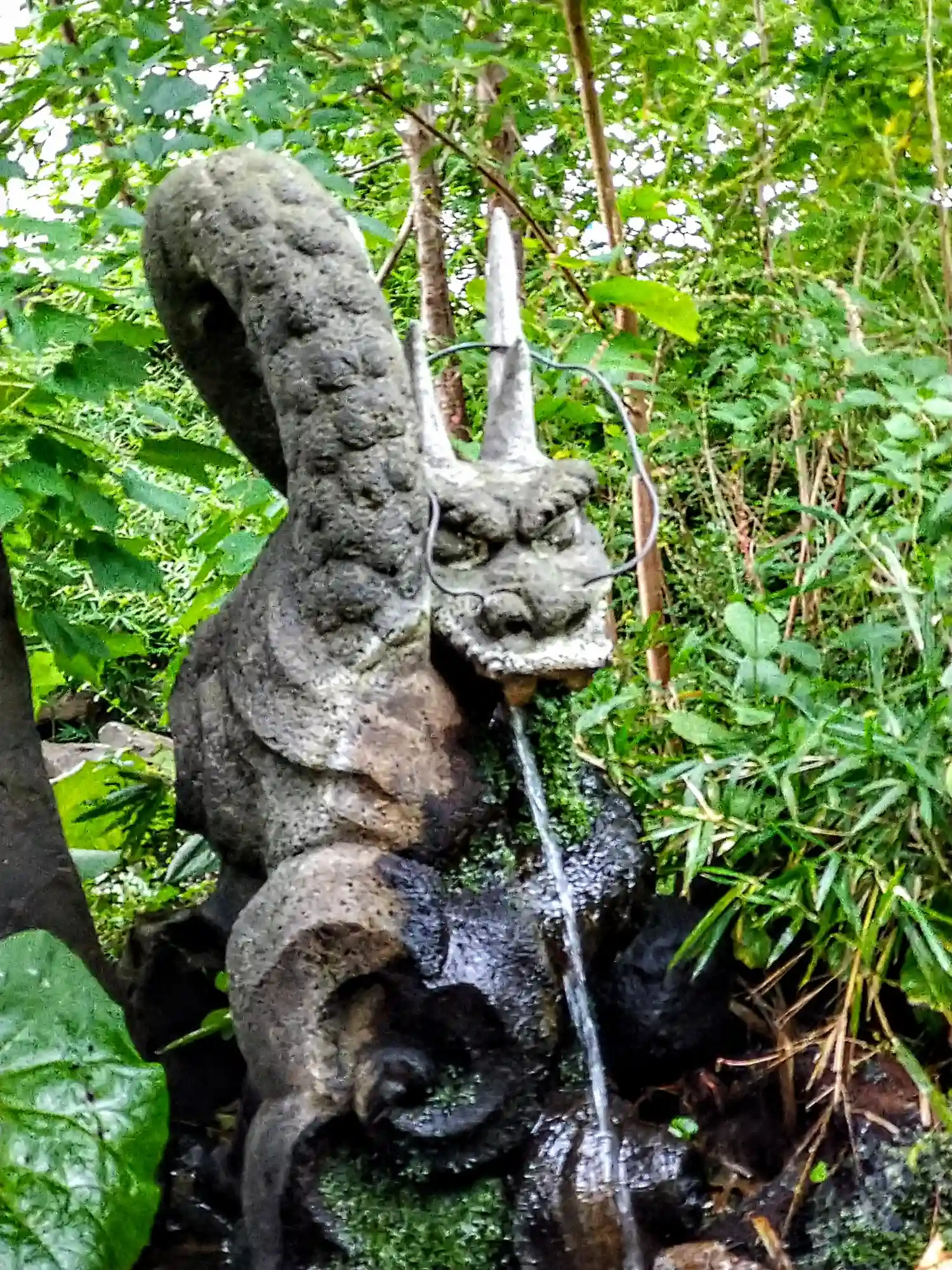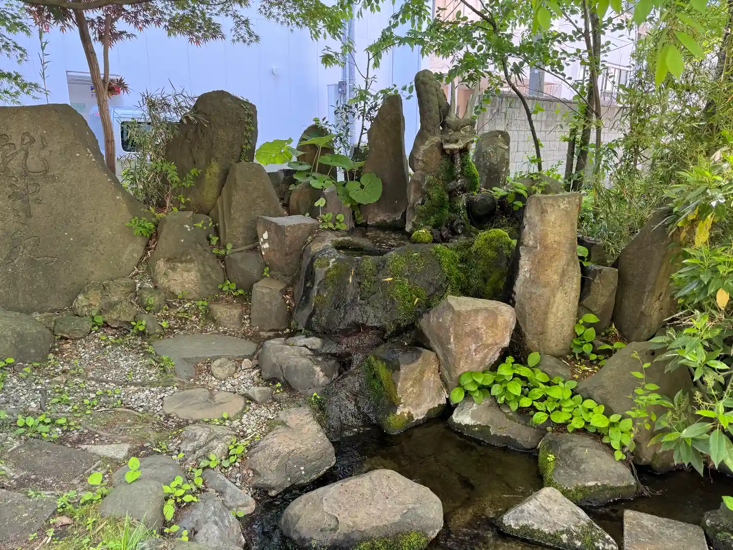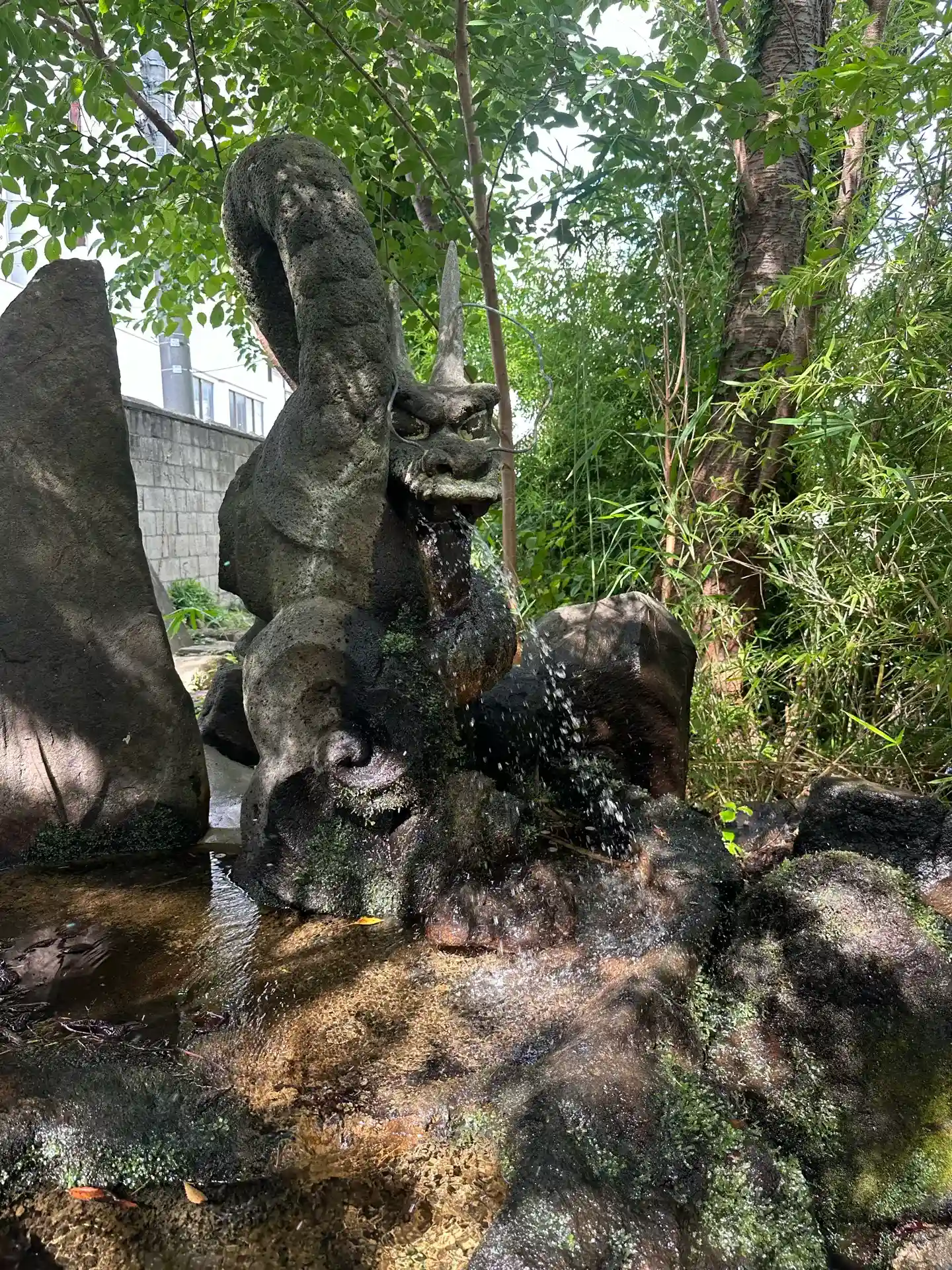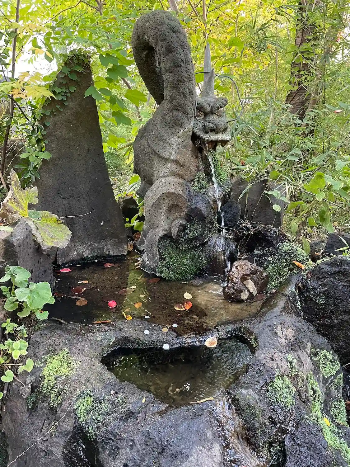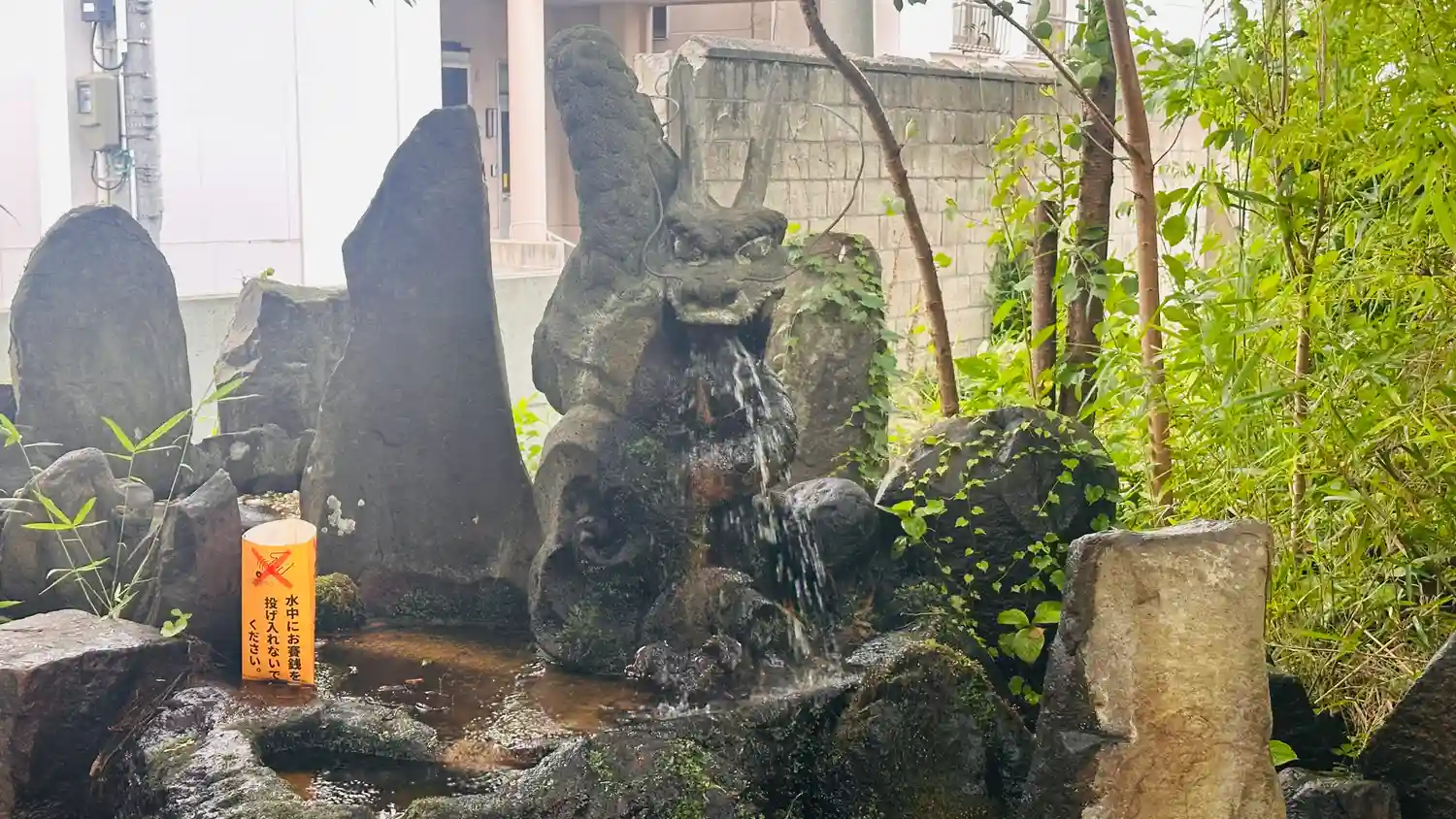 鳥居をくぐって突き当りの、池の左端にある<龍神之水>。