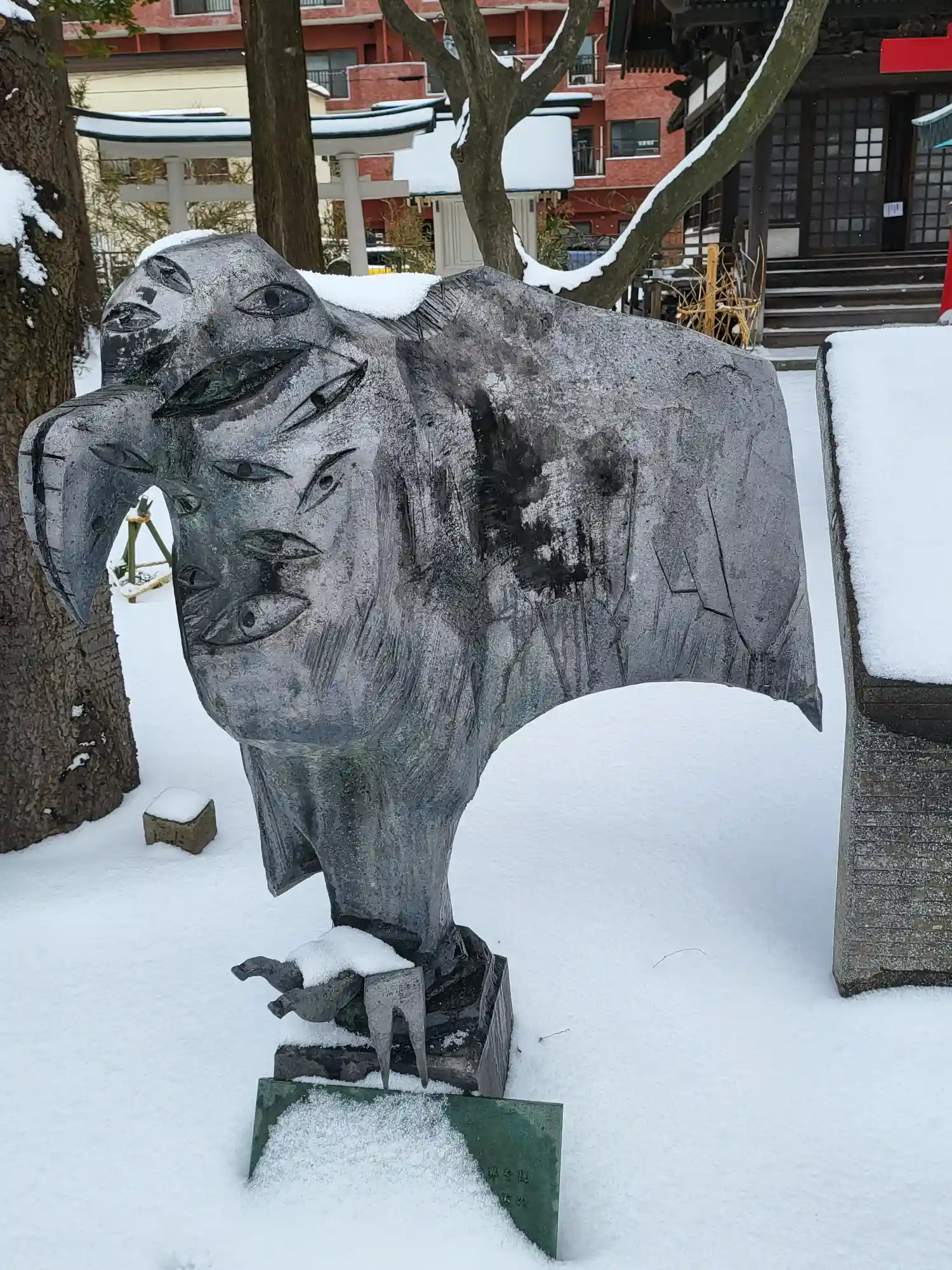 青森の中心部に鎮座されていて青森発祥の地と伝承の神社です。参拝が暗くなってしまい、よく見えませんで…