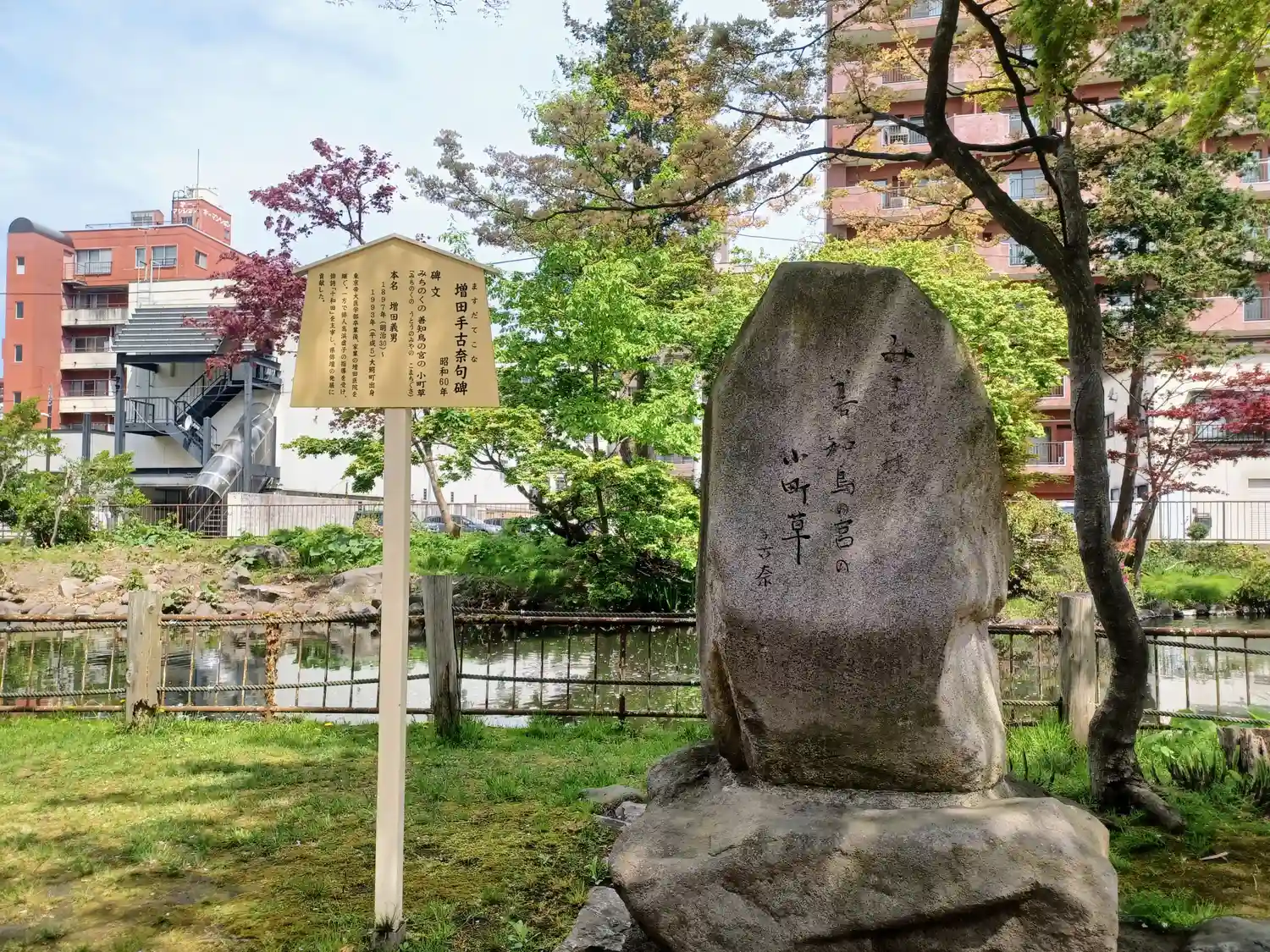 増田手古奈句碑『みちのくの 善知鳥の宮の 小町草(みちのくの うとうのみやの こまちぐさ)』