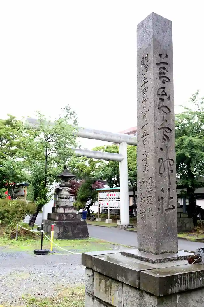 参道から少し離れたところに立っている<社号標>。明治34年(1901年)のもの。達筆過ぎてほぼ読めない...(^_^;)