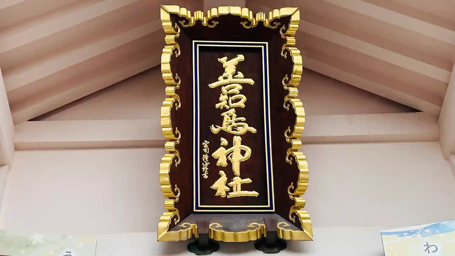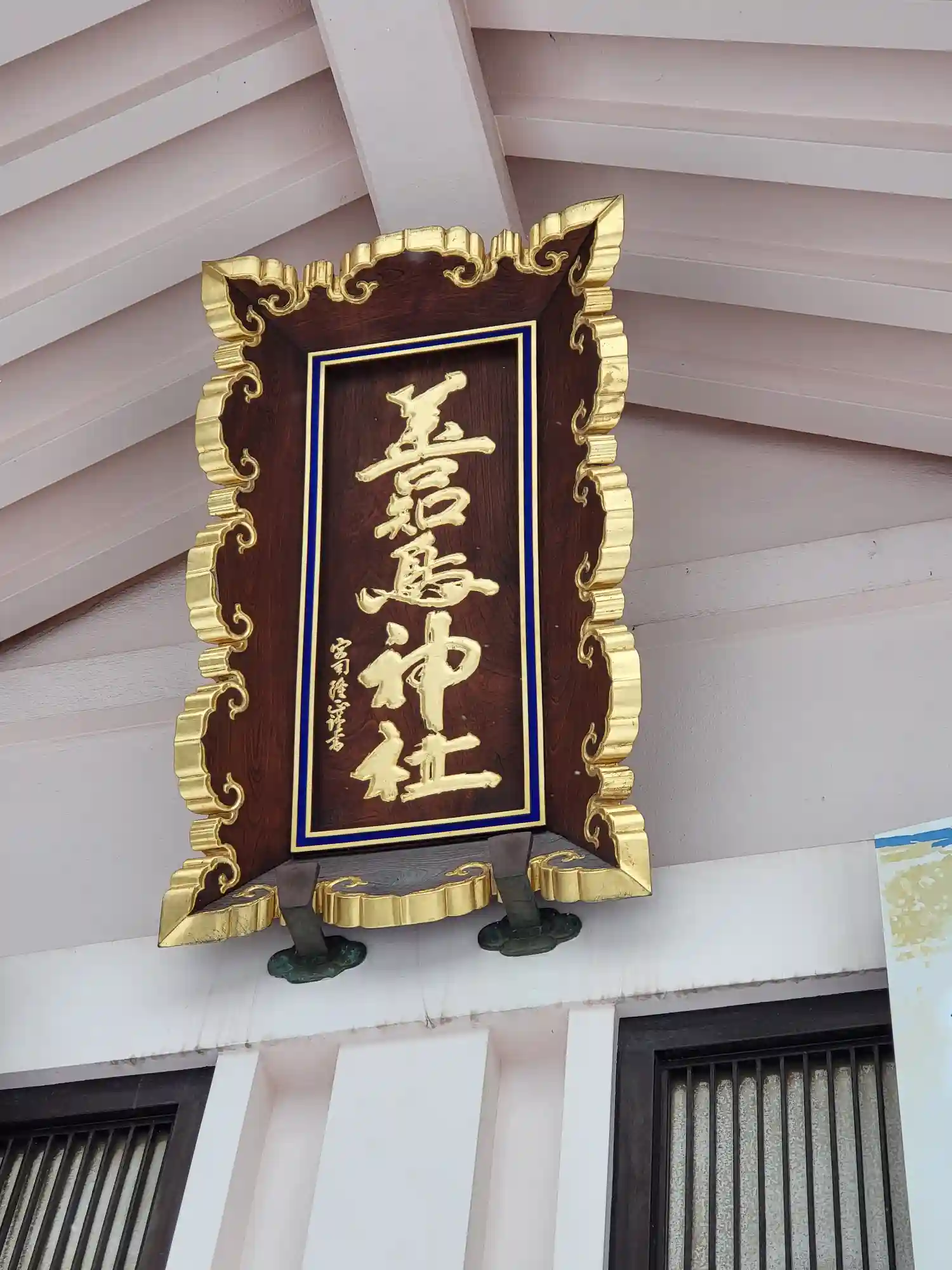 拝殿向かって左側にある建物。扁額の文字は「御宝殿」かな?