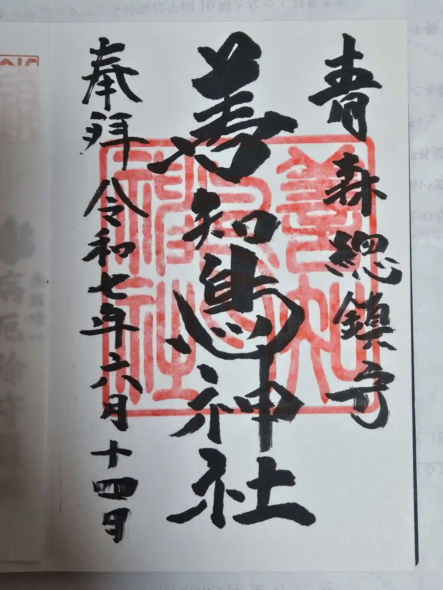 現在書き置きのみ。ねぶた祭り期間の限定御朱印で、1000円納めました。手水舎が復活していました。