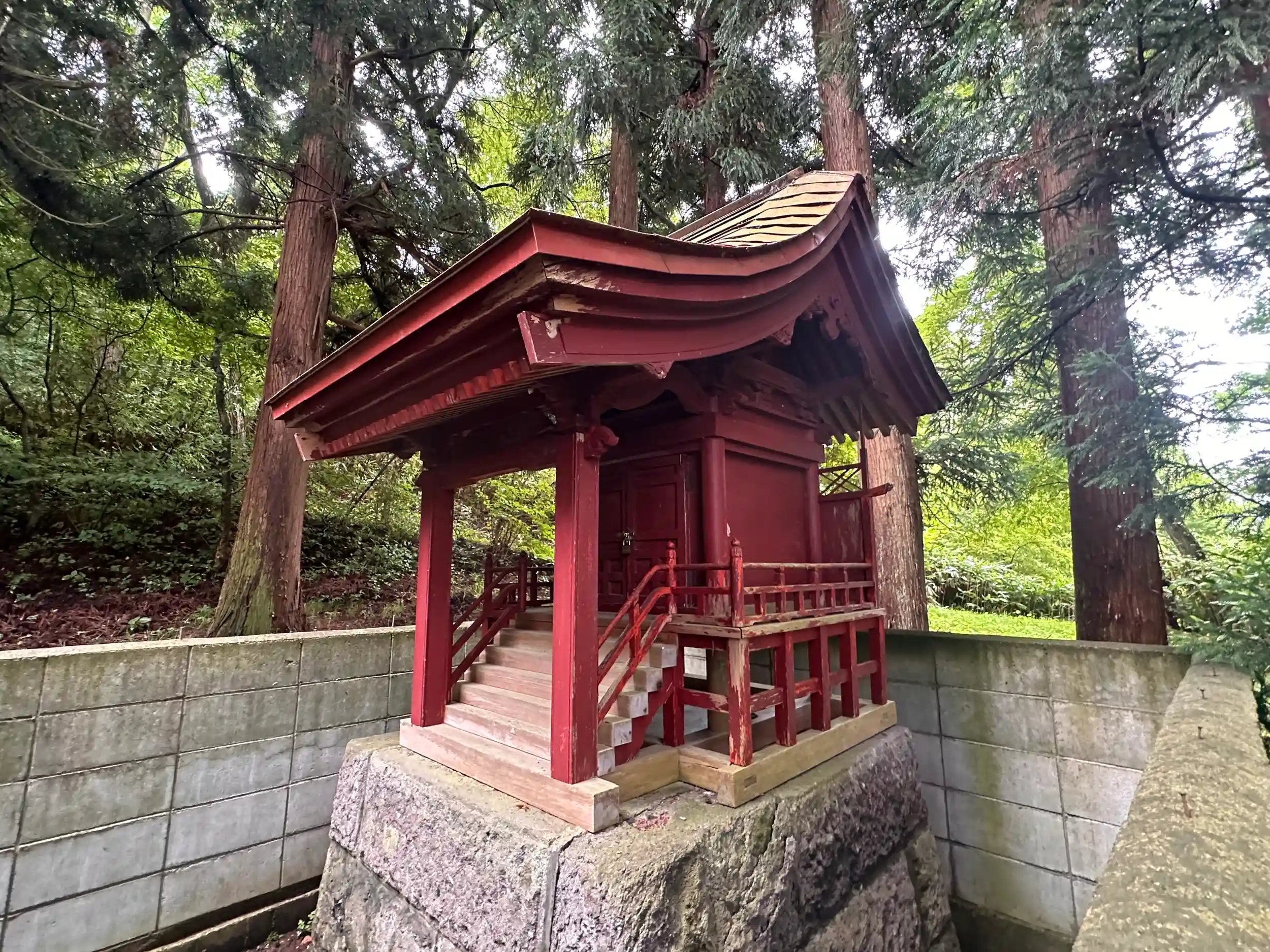とにかく熊に出会わないよう祈りながら参道を進みました、本殿横に由緒書きがありました