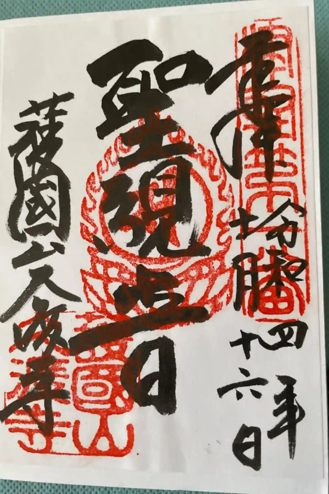中央の御手形は本尊である秘仏聖観音から型を頂戴致しました。