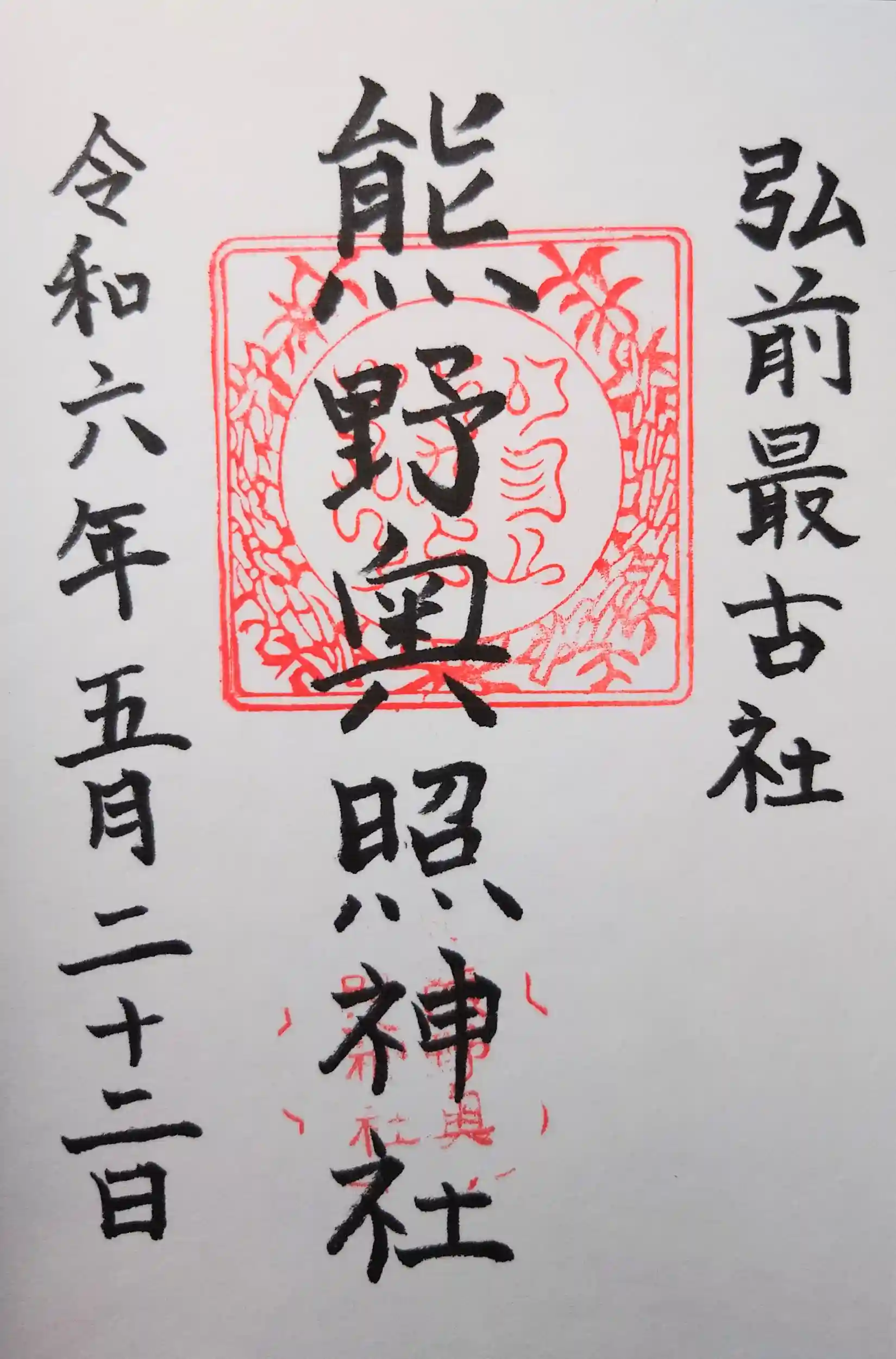 弘前八幡宮の次に近くの熊野奥照神社を参拝しました。 参拝後に御朱印を頂きましたが兼務社・八坂神社の御朱印も対応して頂きました。