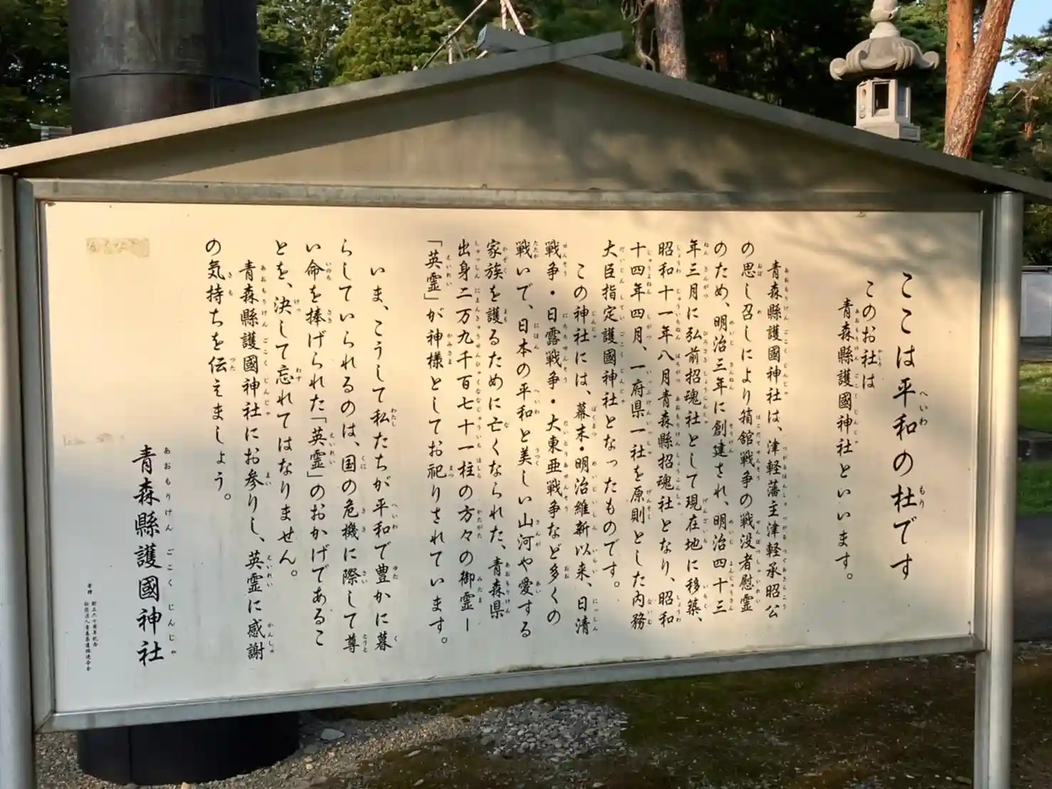 主祭神:戦没した青森県出身者、2万9171柱の英霊