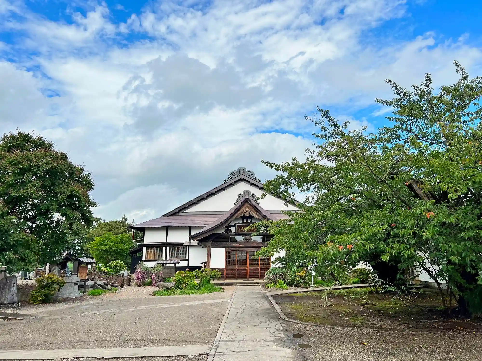 参道の左手にある<沼田面松斎像>。一般には「沼田祐光」といい、弘前藩初代藩主・津軽為信の軍師であったとされる。当寺には沼田家代々の墓がある。