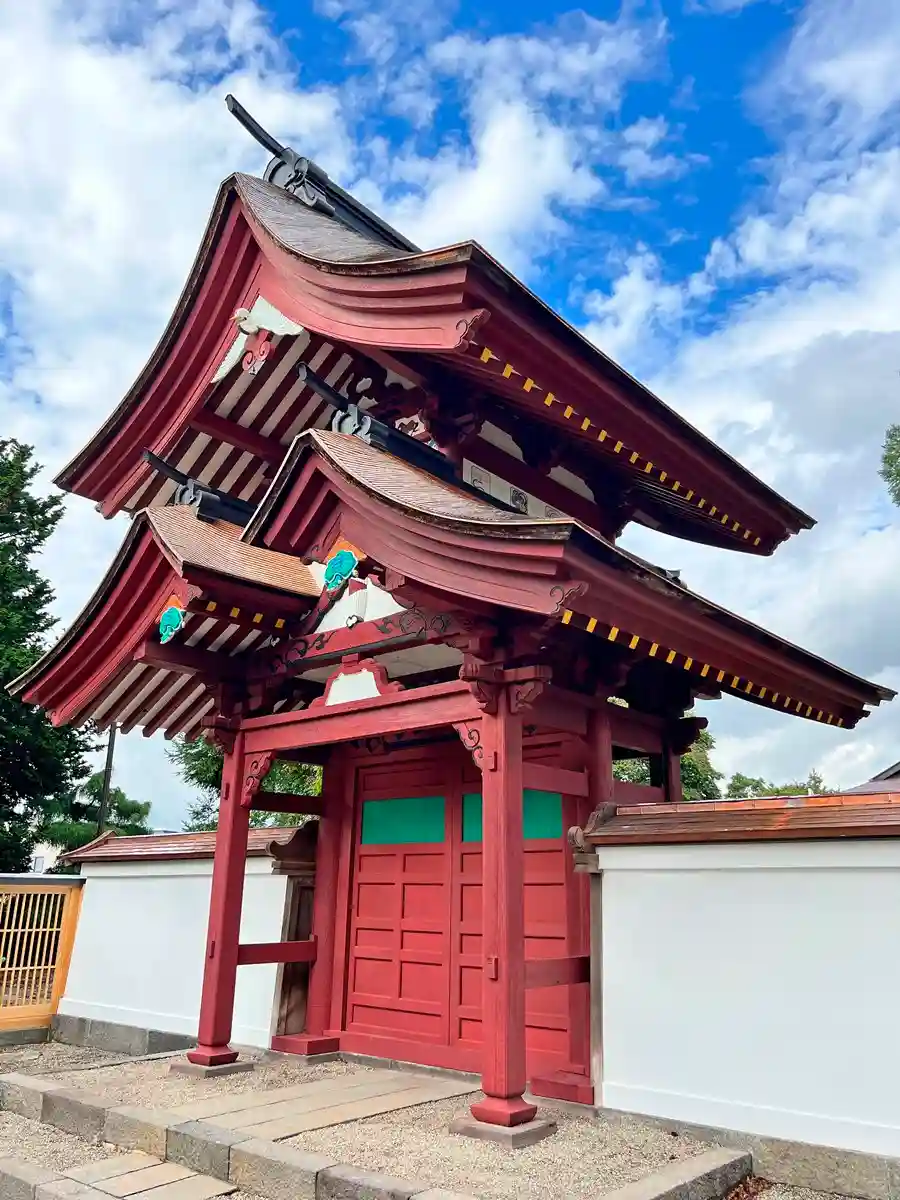 創建は安土桃山時代の1596年、弘前藩初代藩主・津軽為信が母親の菩提を弔うために岌貞上人を招いて開山したのが始まり。以降、津軽家から庇護され寺運も隆盛し、領内浄土宗寺院四ヶ方丈の格式を得て寺領30石を安堵された。岌貞上人は2代藩主・津軽信牧とも親交が深く、1615年の弘前城築城に際し、城の西側の守りとして現在地に移され大伽藍が造営されたと伝わる。しかし、1688年、1748年、1839年、1881年と火災が相次ぎ、堂宇も縮小され、移転当時からの建物は山門のみとなっている。