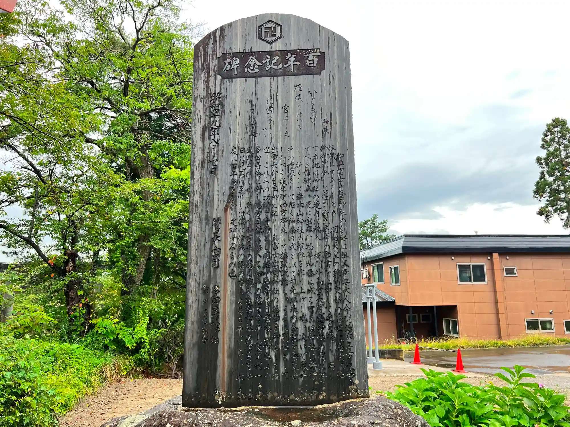 鳥居をくぐって、参道左側にある<百年記念碑>。