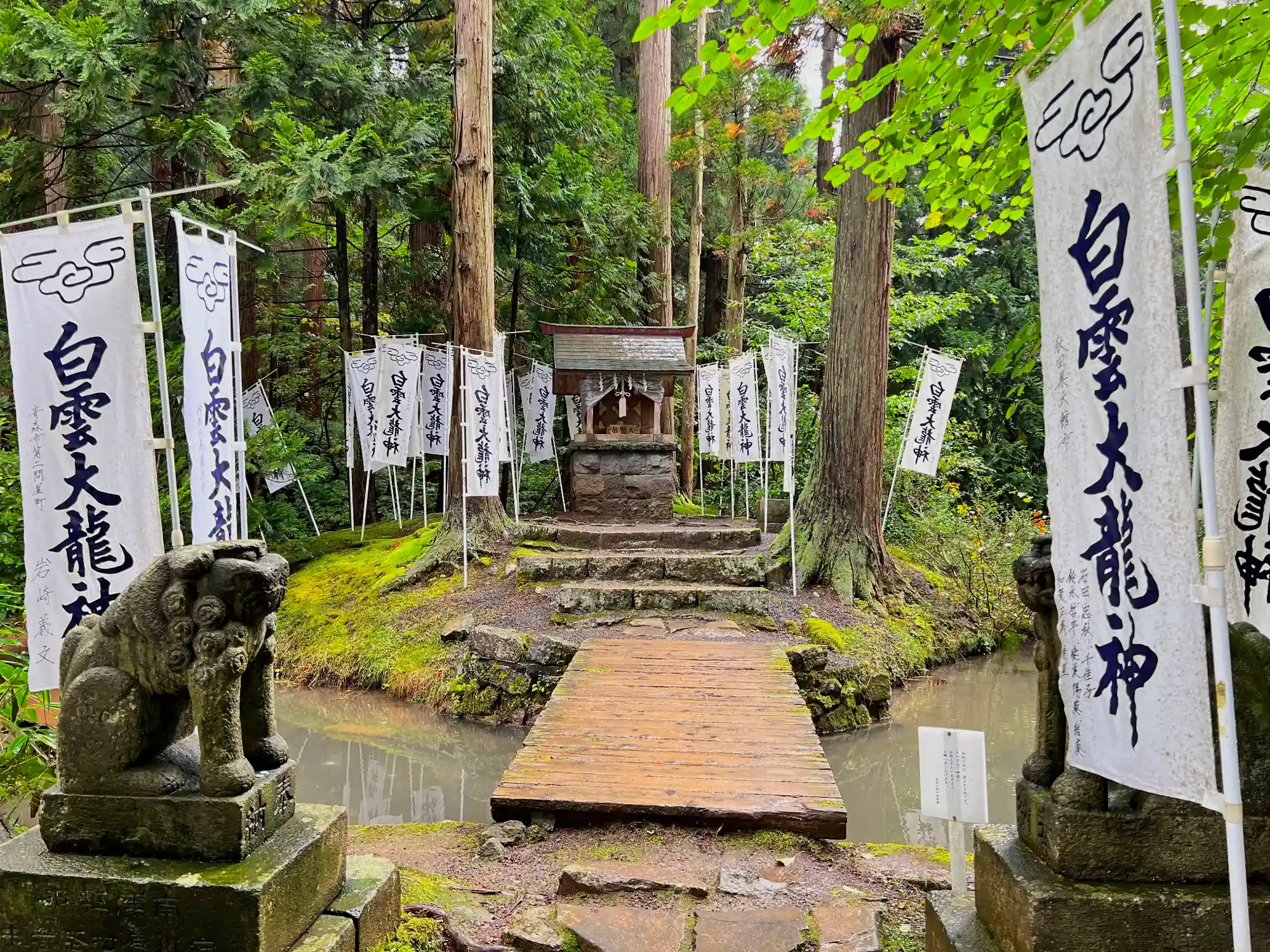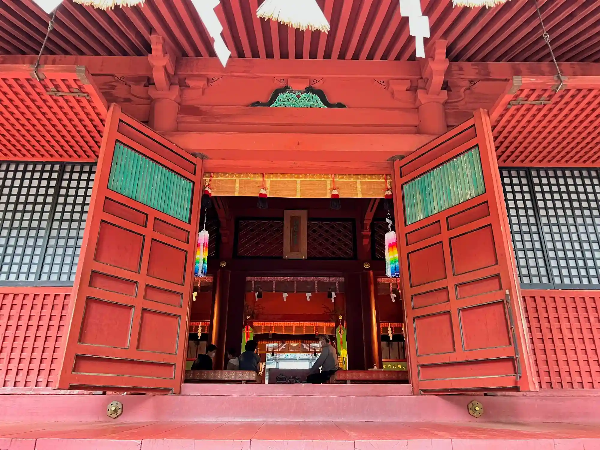 本殿は、1694年に4代藩主・津軽信政により建立。三間社流造銅瓦葺。豪華絢爛な建物のようだが、一般参拝だとこの画角範囲が限界。(^_^;)
