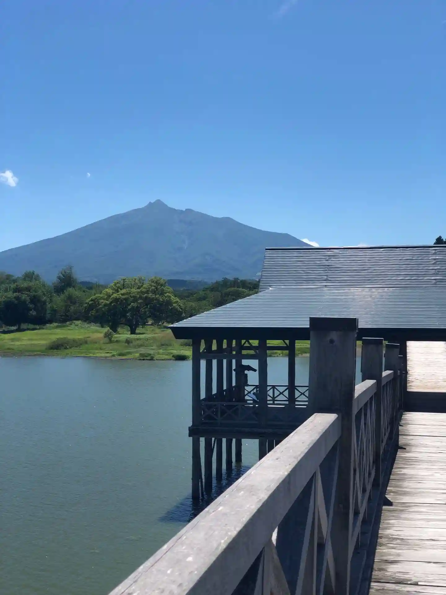 日本で1番長い橋、鶴の舞橋。岩木山と富士見湖が見える美しい所にある神社です。