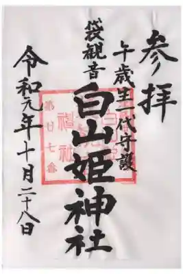 白山姫神社の御朱印・御朱印帳