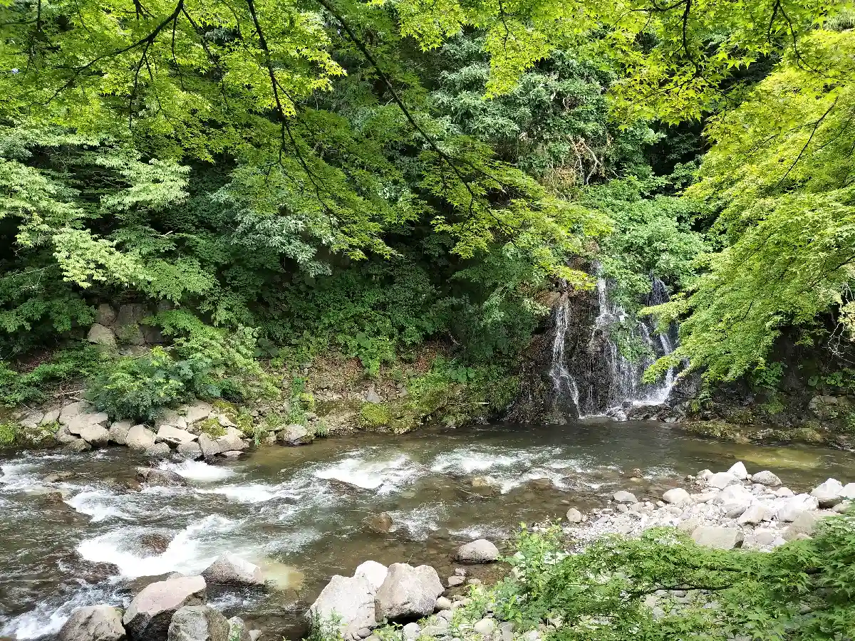 横には川が流れて…