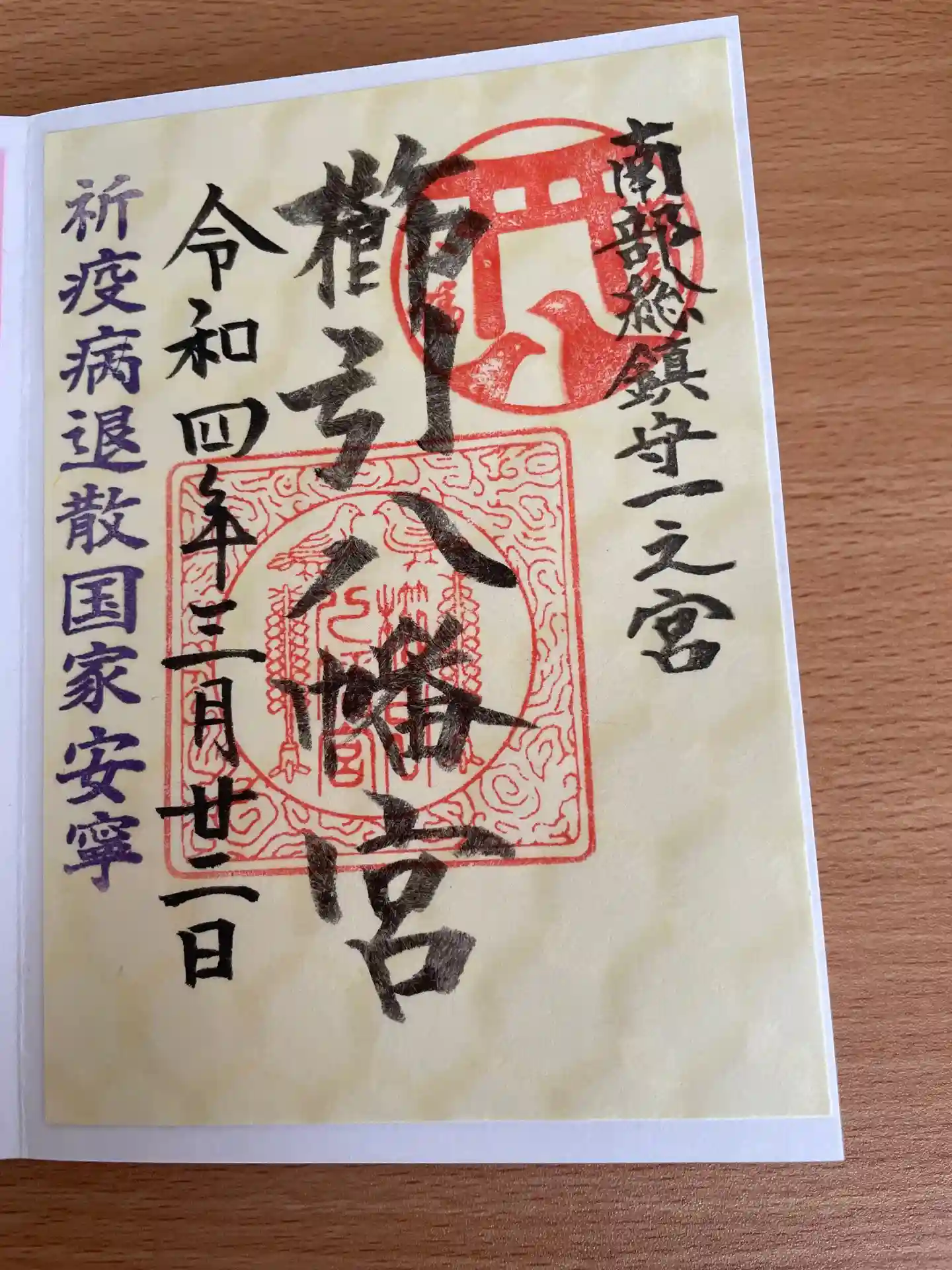 御朱印は黄色と紫があり黄色を選びました