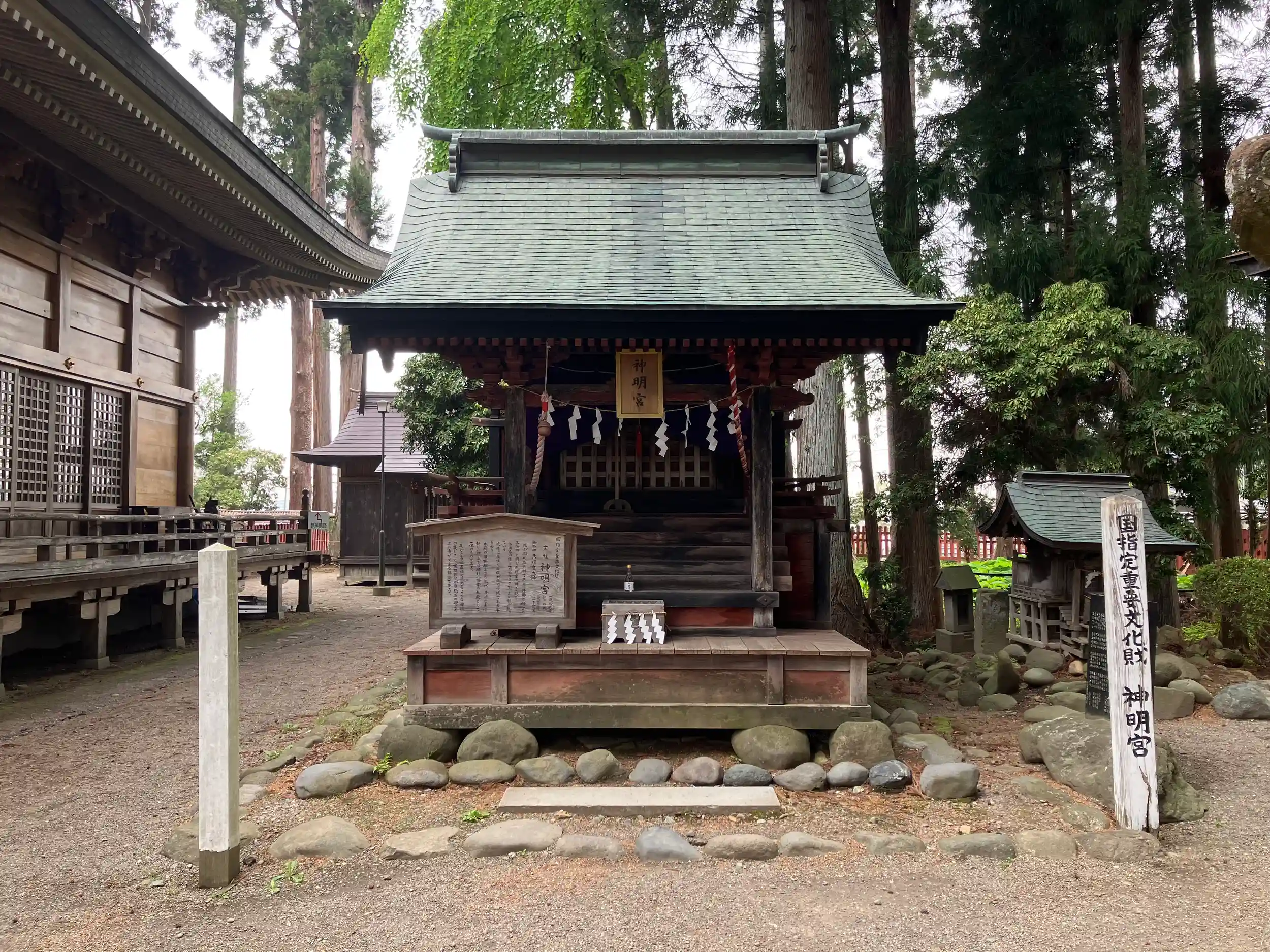 本殿、長所、南門、神明社、春日社は1648年盛岡藩2代藩主・南部重直の造営でいずれも重文指定されている。