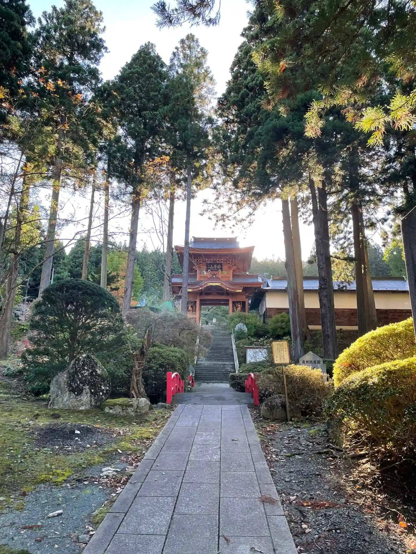 三重塔が美しく、お庭もきれいに手入れされていました。お寺に至るまでの杉林にも癒されます。