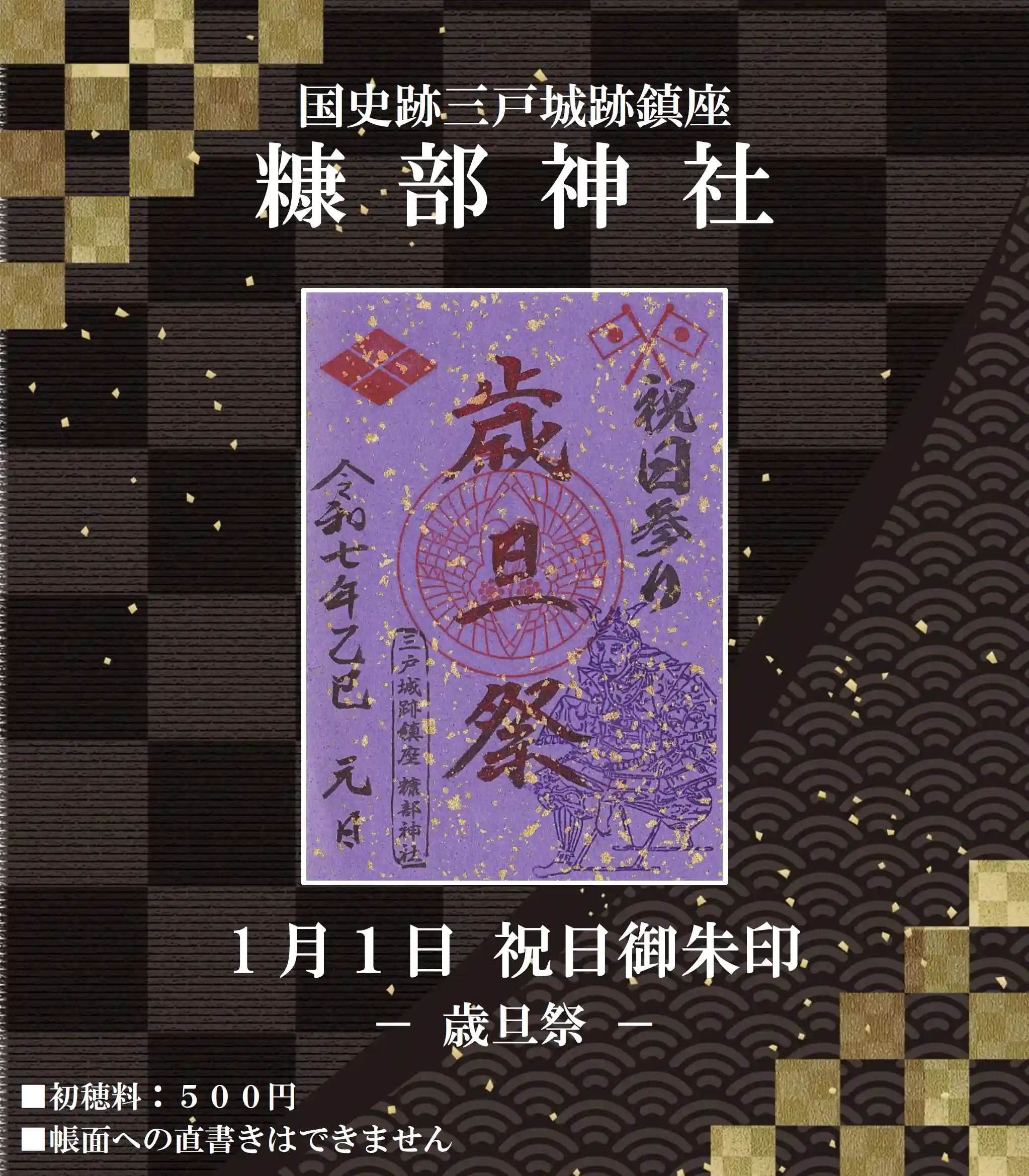 糠部神社より、正月期間に授与する御朱印頒布のお知らせです。