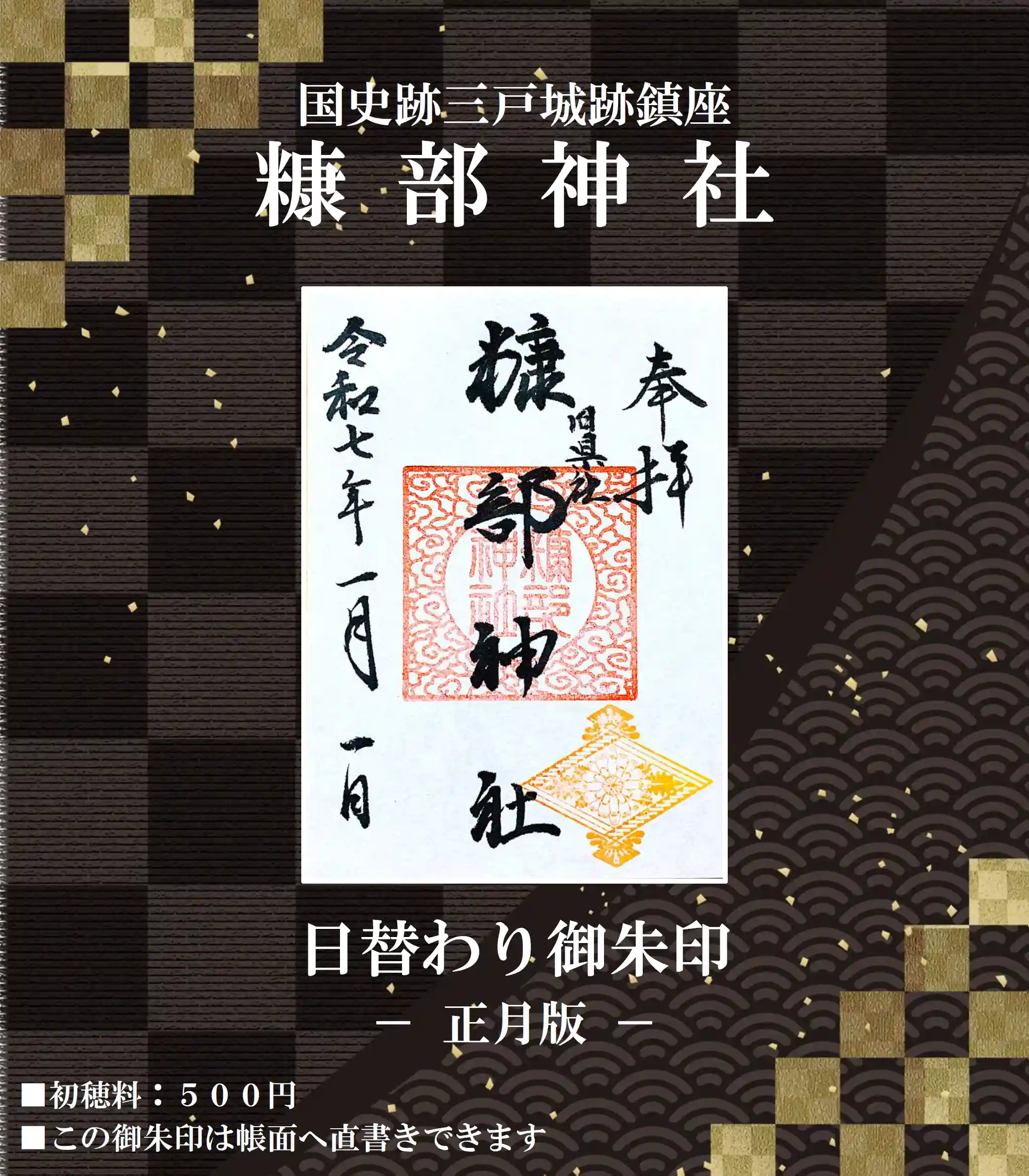 ❖3.日替わり御朱印  ※帳面に直書きできます。正月版のオリジナル印。